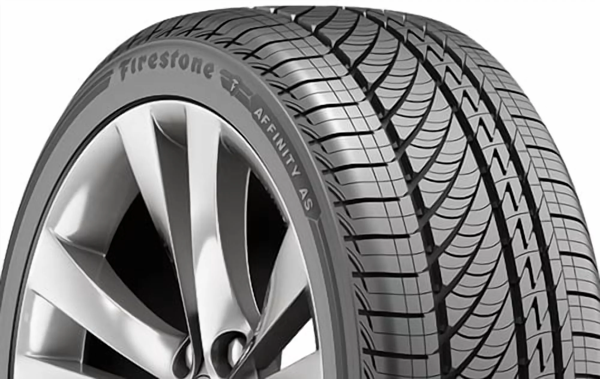 The Affinity AS is a Firestone-brand all-season touring tire designed for mainstream sedans and minivans, offering a balance of confident handling, a quiet ride, and long wear. It features a tread compound to resist uneven wear, noise-silencing grooves for a comfortable experience, and diagonal and lateral sipes to improve wet-weather traction. Firestone offers a 70,000 mile tread wear warranty with this model. The Affinity Touring was manufactured with the L. L. Carbon compound as well. This creates a long link throughout the tire on a molecular level that strengthens the tread area. In this manner, the tire becomes resistant to cracking and tearing and it slows the tread wear rate down.