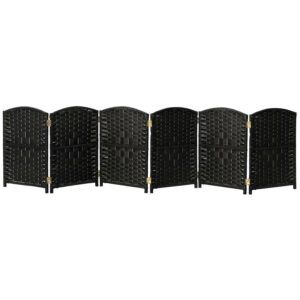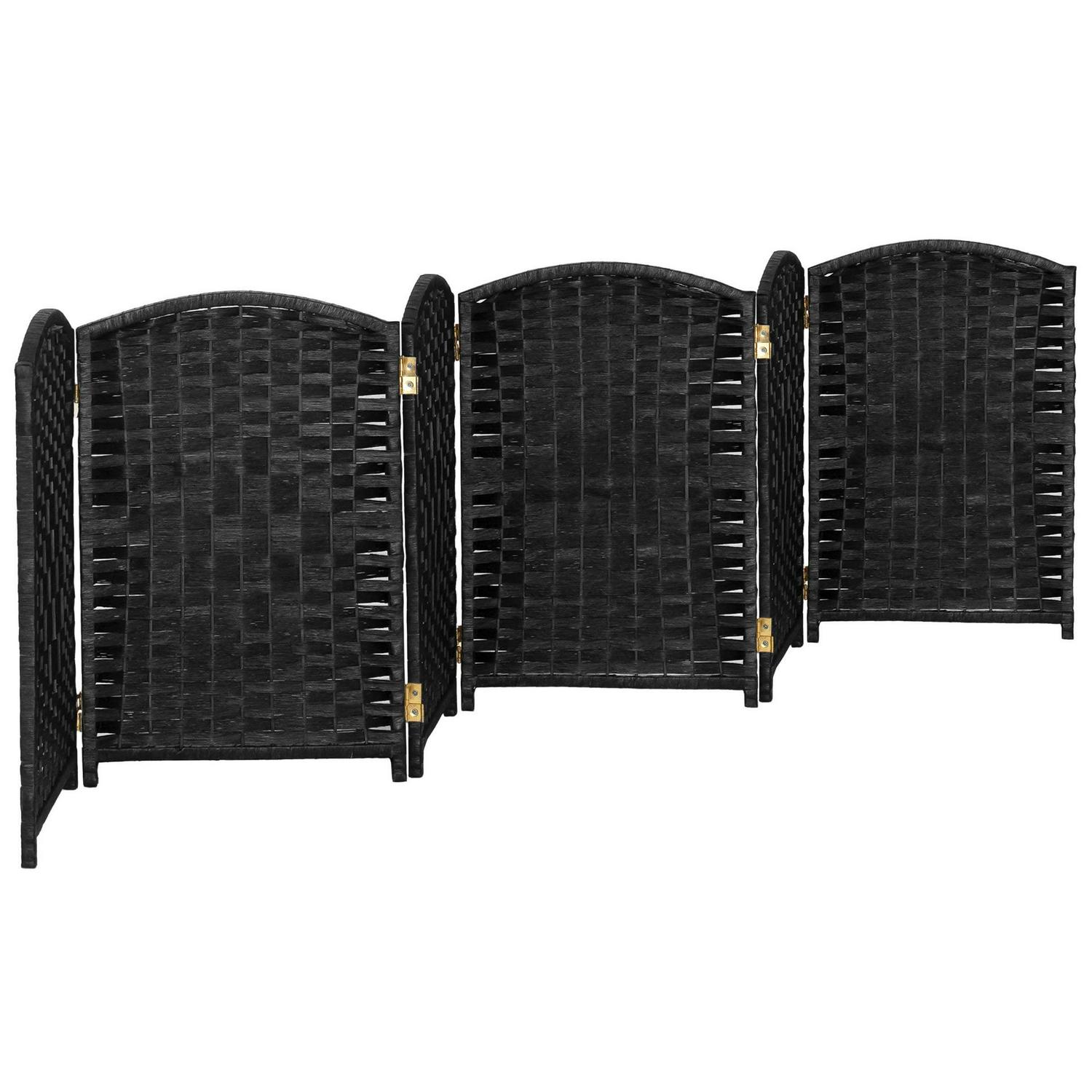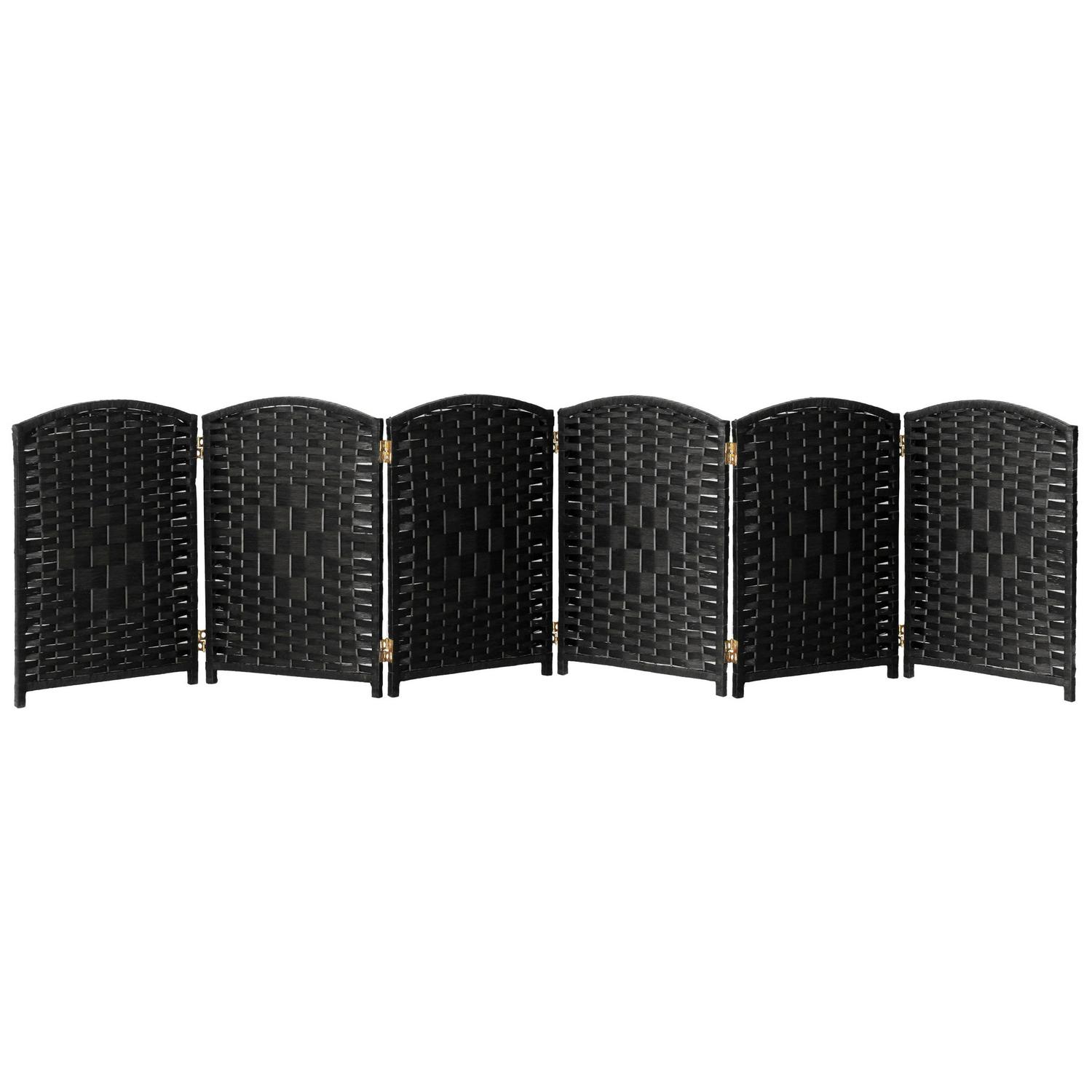 2 ft. Short Diamond Weave Fiber Folding Screen – Black – 6 Panel