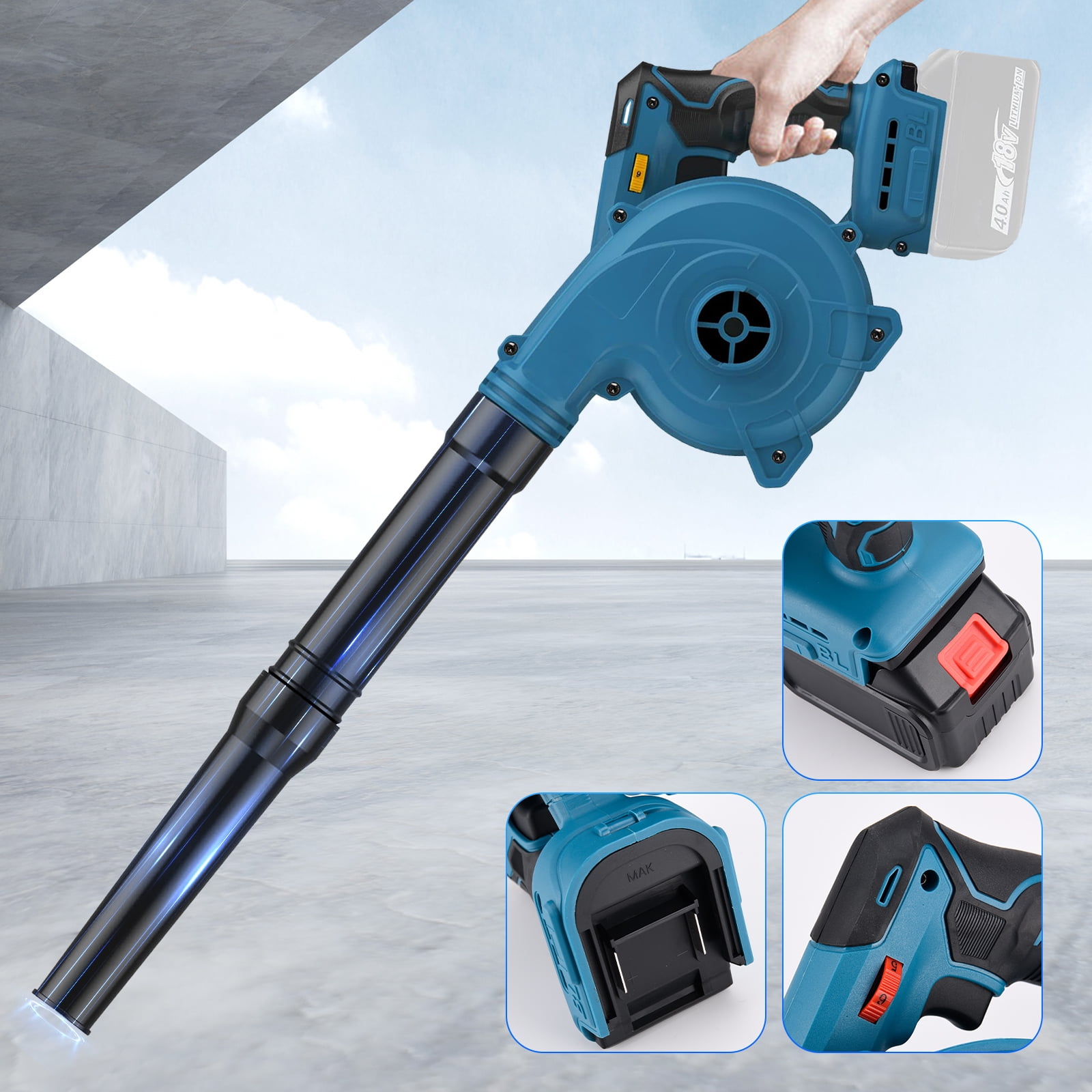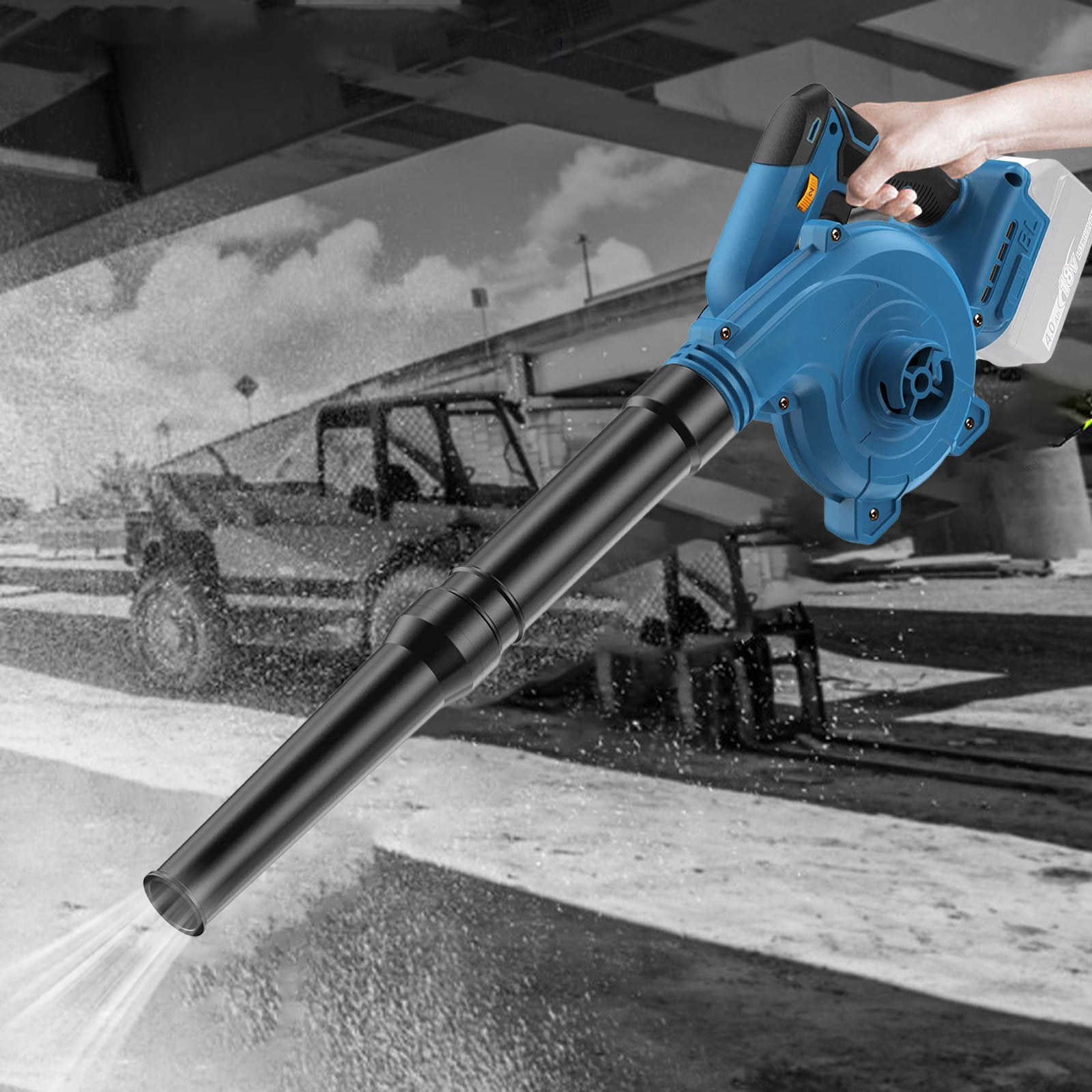 This 2-in-1 cordless leaf blower and vacuum provides flexibility and versatility. It weighs only 2.5lbs with a comfortable non-slip handle, ideal for extended use. The high-performance brushless motor ensures longer life and quieter operation. With 6 adjustable speeds, it reaches up to 180MPH and down to 70MPH for various tasks. Built-in low-voltage and over-current protection safeguards the batteries. It comes with 2 high-capacity 20V batteries, offering fast charging and efficient use. Specifications: Material: ABS Color: Blue Powerinput: 20V Max Blower speed: 180MPH No-load speed: 18000 RPM Battery type: 20V Lithium-ion Packing List: 1 * 20V Max Cordless Blower 2 * 4000mah Lithium Batteries 1 * Fast Seat Charge 1 * Flexible Pipe 1 * Dust Collect Bag 1 * Small Suction Nozzle 1 * Large Suction Nozzle 1 * Extension Tube 2 * Genetal Tube 1 * Inflatable Nozzle