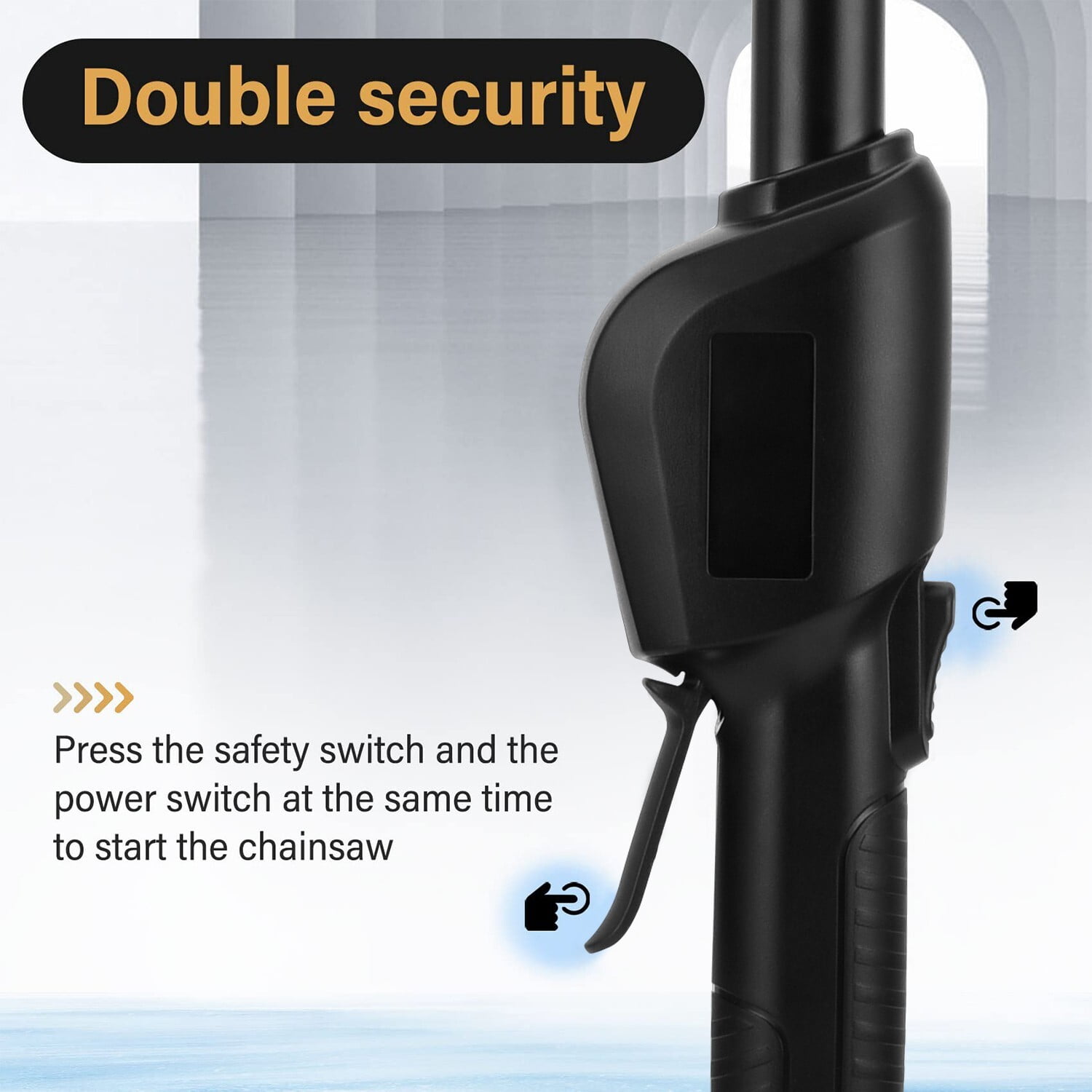 Product Features: 1. 2-in-1 Cordless Pole Saw & Mini Chainsaw: We have developed an upgraded 2-in-1 chainsaw. On the basis of the traditional mini chainsaw, it is equipped with a retractable long pole, which can easily trim high branches. 2. Retractable Long Pole: No longer need to use a ladder to trim high branches, the telescopic pole length can be adjusted from 3.5 feet to 6 feet. Combined with the height of the human body, it can reach a height of up to 12 feet. The chainsaw has 5 adjustable angles to help you adjust to the most comfortable cutting angle. 3. Highly Efficient motor: The powerful motor revs up to 18 ft/s and has 600 watts of output to cut logs up to 5 inches in diameter in 6 seconds.The mini chainsaw is equipped with a cold-rolled integrated high-hardness guide plate, which is not easy to deform. And provide 2pes replacement chains, the high-temperature quenched chain is sharp and wear-resistant. 4. Lightweight and Portable: The mini chainsaw weight of only 2.4 pounds, the pole chainsaw weight 5lb, even women, beginners, and the elderly can easily use it, and it can be operated with one hand.You will receive your chainsaw fully installed, free of hassle. 5. Two Replaceable Batteries: Equipped with 2 pack 24V, 1.5Ah 10C lithium batteries. Can be recharged more than 300 times, overheat/overcharge/short circuit protection, stable battery performance. A single battery lasts 30-40 minutes, providing continuous power for your work and uninterrupted logging fun. Product Specificationsï¼ Guide Plate Length: 6-Inch and 4-Inch Output Power: 600W Battery: 1.5Ah 24V MAX Lithium Battery(2 PCS) Main Material: Fireproof ABS + Soft Rubber Weight: 5lbs Color: Black Notes: 1. Check the chainsaw is well installed and remember to check that the connecting rod is securely installed. 2. Novice users are advised to read the instructions., skilled before normal use. Package List: 1* 4-6inch Mini Chainsaw 1* Telescopic extension rod 2* Battery 1* Charger 1* Screwdriver 1* Hex Wrench 1* Manual 2* Chain (4inch,6inch)