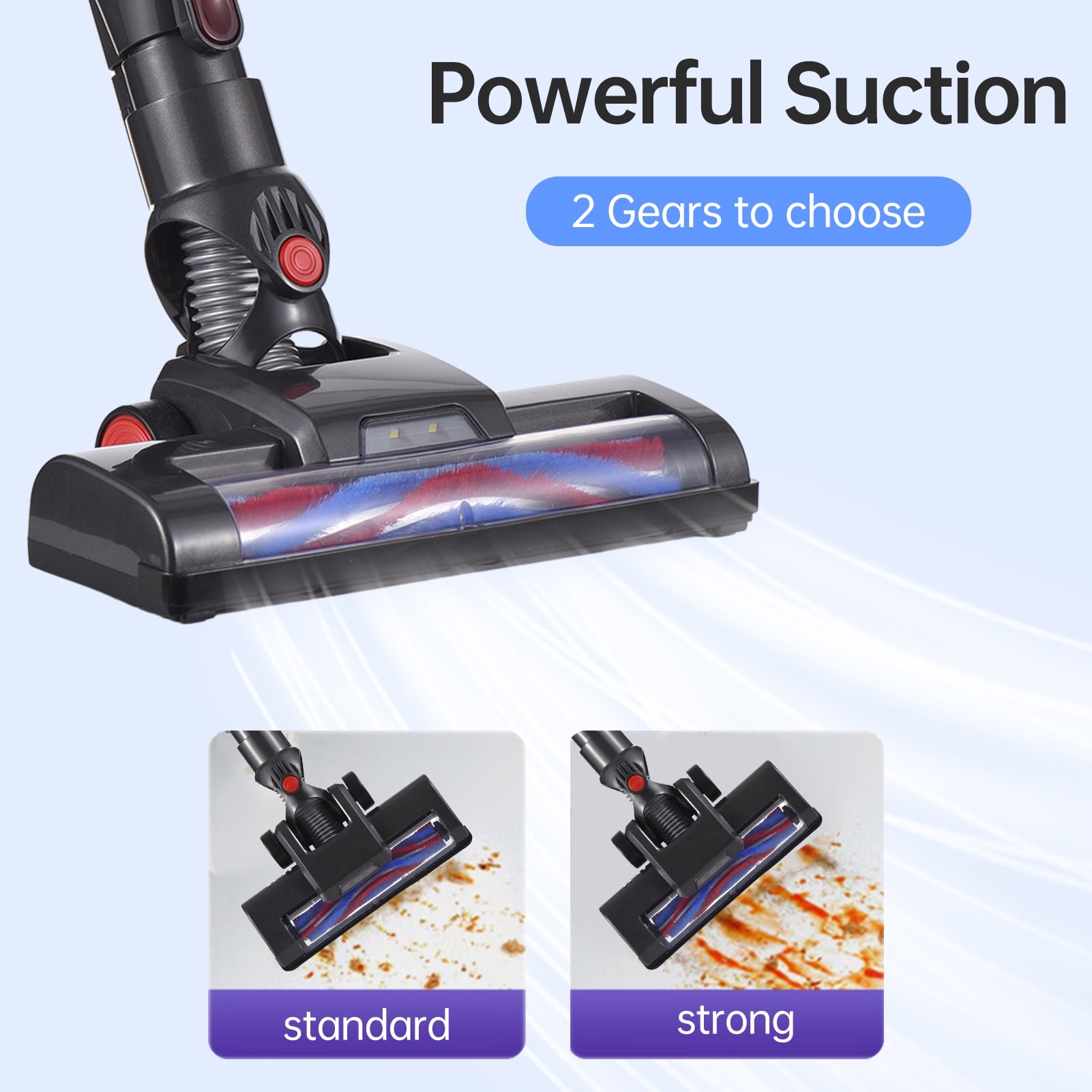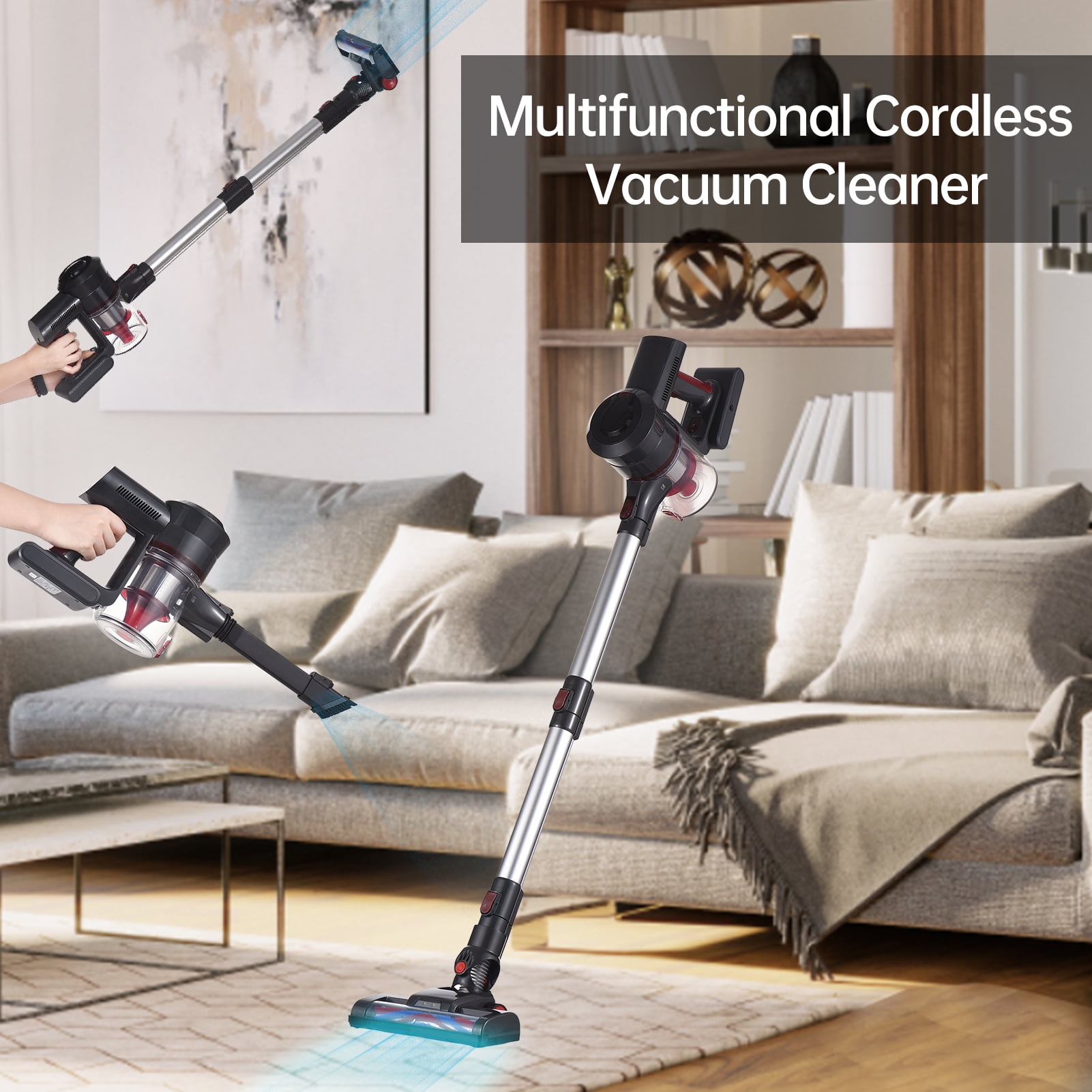 2 in 1 Handle Cordless Vacuum Cleaner, 210W 25KPA Powerful Stick Vacuum 40 Mins Runtime with LED Lights for Home Office Hard/Wood Floor Pet Powerful Suction & 2 Modes: Support one button to adjust, delivers 25Kpa suction power,to meet different cleaning needs Long-lasting Life & Detachable Battery: 2500mAh battery Running time of up to 40 mins after about 3.5hrs fully charged Efficient Filtration: It can efficiently capture 99.99% of the microscopic dust particles to avoid secondary pollution, provide ultimate purified air for your family LED Light: The maneuverable brush head with bright LEDs can illuminate dark areas, helping you clean hidden dust in every corner Thoroughly Cleaning: The built-in independent motor provides extra power for quick and thorough cleaning Lightweight Vacuum Machine: Making it easy to lift and clean high places or with just one hand. Adjustable length: Equipped with 2 extension tubes for you to change rod length as you need 2-in-1 Functions: 2-in-1 brush nozzle and a floor brush,can use as cordless vacuum and car vacuum cleaner.Solving the inconvenience of traditional vacuum cleaners in cleaning hard-to-reach corners. 2 in 1 Functions: 2-in-1 brush nozzle and a floor brush,can use as cordless vacuum and car vacuum cleaner.Solving the inconvenience of traditional vacuum cleaners in cleaning hard-to-reach corners.|Large Capacity Battery,2500mAh,Up to 40mins runing time|Powerful Suction,standard,2 Gears to choose,strong|Multiple Application Scenarios,GRA|Flexible and Portable,Lightweight to carry and raise up.|Detachable Aand Washable Dust Cup,Easy to clean,8|Lecc,Flexible Floor Brush Head,Free to adjust the angle easily to reach corner
