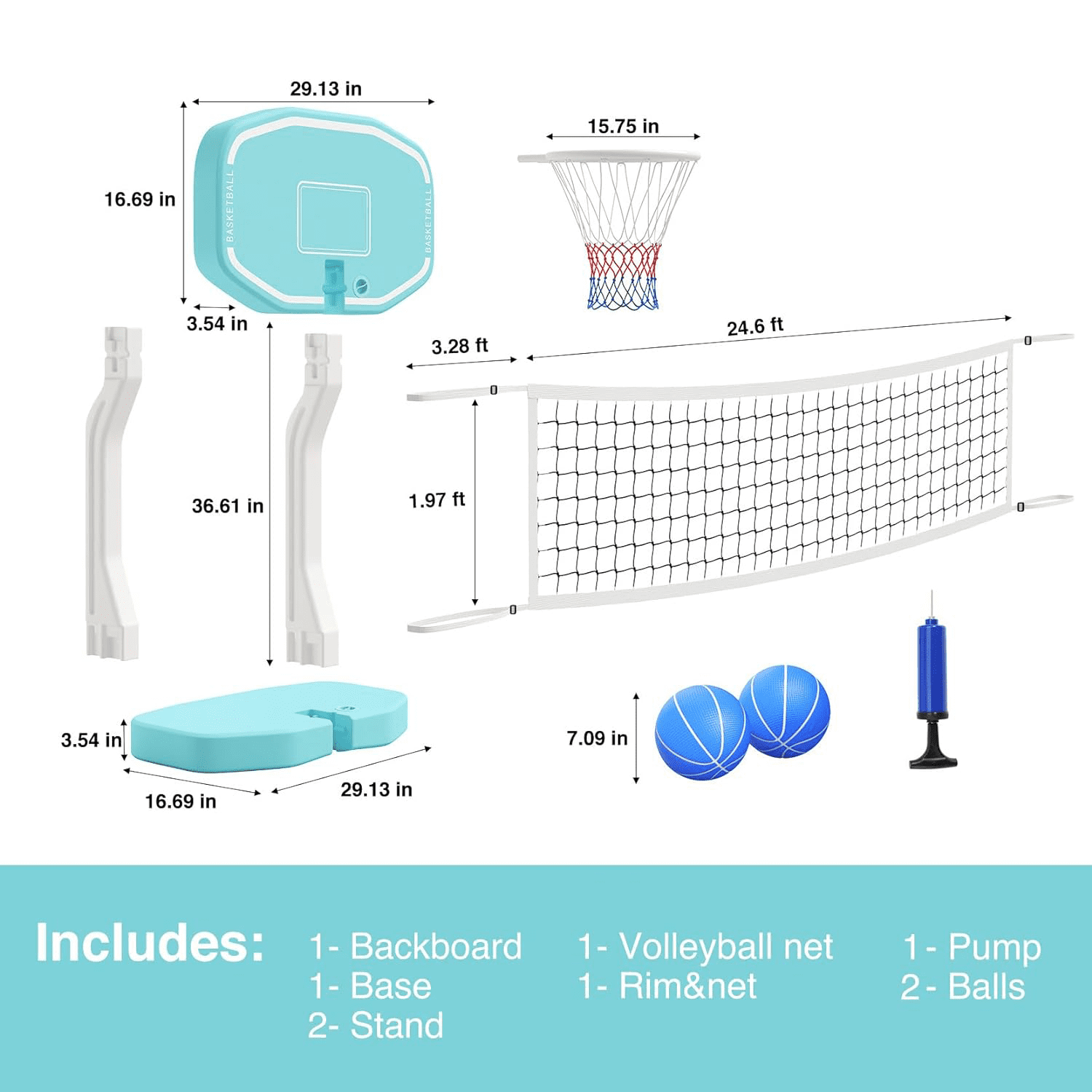 👨👩👧👧Neche has a long history of developing innovative products of the highest quality. At Neche, we realize quality matters and strive to be the best manufacturer of recreational pool games and home decor in the industry. This Pool Basketball Hoop & Pool Volleyball Net, is made of safe, environmentally friendly and rustproof PE material and is one of the few 2-in-1 multifunctional Swimming pool games set. 👨👩👧👦Pool Basketball Hoop & Pool Volleyball Net, 2 in 1 Pool Toys Pool Accessories Pool Games for Inground Pools, Swimming Poolside Basketball Set for Kids Adults. 🤽2-IN-1 Multifunctional: Instantly switch between full court pool basketball and pool volleyball in seconds with no tools required; set includes 2 water basketballs and 2 water volleyballs with pump; 🤽Fullcourt Action: No-compromise design allows for exciting ‘full-court’ pool basketball for competitive back and forth action with family & friends; 🤽The volleyball net:Allows for up to a 25ft width that allow for exciting ‘full court’ back and forth gameplay. To transition to volleyball, simply rotate the bases and attach the net and you’re ready to play within seconds (no tools required); 🤽Premium Construction:Made of high-quality PE and reinforced structural connections, rust-proof and more durable; 🤽Decorate Your Pool:A great addition to summer pool games, helpful for parent-child interaction and exercising; 🤽Coloful Pool Toys:It is perfect for enjoying fun in the pool with friends and families on a hot summer day. 🏊Product Dimensions:29.13 x 16.69 x 50.4 inches 🏊Basketball Backboard Size:29.13 x 16.96 inches 🏊Item Weight:24.2 pounds 🏊Age Group:Kids,Adults,Family 🏊Package List:The pool basketball set includes:1 x backboard, 1 x base, 2 x stand, 1 x rim, 1 x volleyball net, 2 x balls and 1 x pump. If there are any questions about the product, please feel free to contact us and our after-sale team will get back to you at first time.
