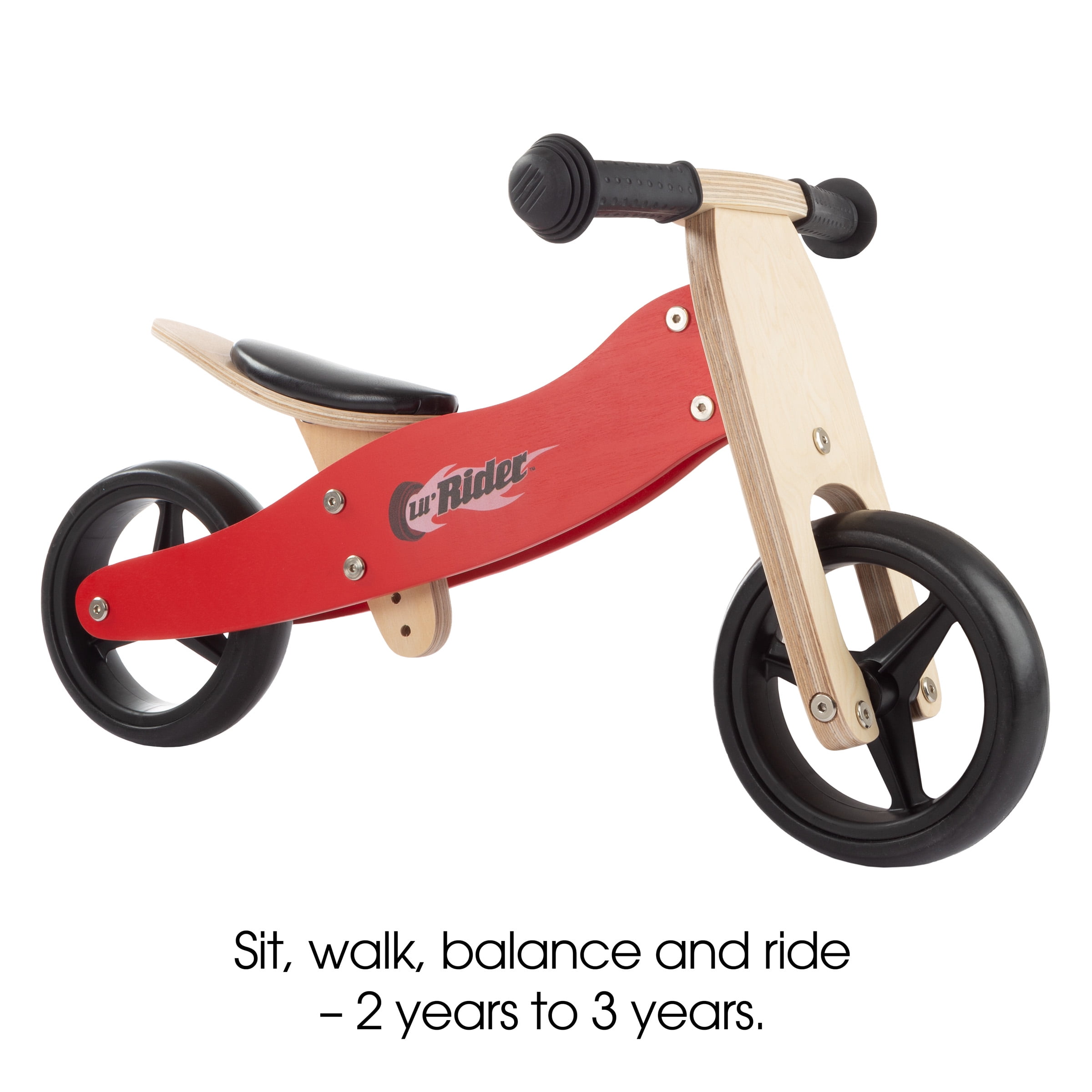 Watch your child develop balance and gain self-confidence at an early age with the 2-in-1 Wooden Balance Bike and Push Trike by Lil? Rider. The convertible bike starts off as a tricycle for toddlers and transforms into a 2-wheeled balance bike for active 3-year-olds, so it grows with your child. With a padded adjustable seat, easy grip handles and sturdy rubber wheels, this bicycle is not only fun, but safe for your little one. The carefully designed bike is also crafted with a sturdy birch wood frame for long-lasting use on their way to becoming a bike riding pro! SATISFACTION GUARANTEED- Lil? Rider is committed to providing the consumer with the absolute best price and value on all of our products, which we ensure by applying a rigorous quality control process. NOTE: This is an exclusive product of Lil? Rider and ONLY Balance Bikes by Lil? Rider are GUARANTEED to be genuine. IMPORTANT: Avoid buying counterfeit products and transacting with unauthorized sellers. Look for our logo on the packaging for every one of our products.