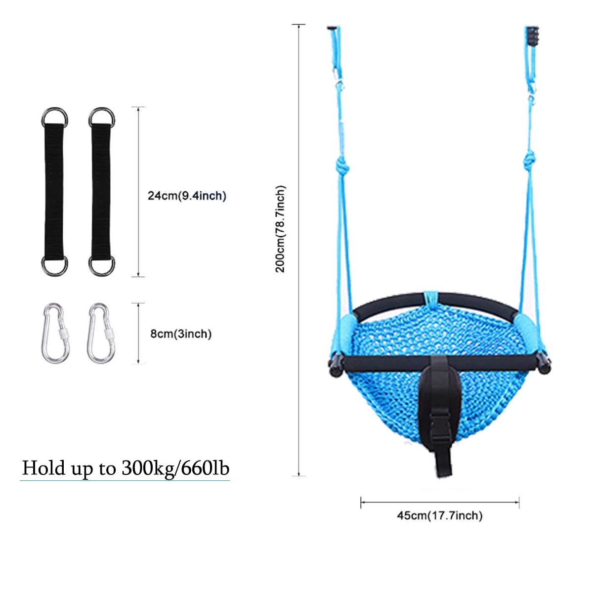 Features Versatile Indoor & Outdoor Fun: Transform any space into a kids’ exclusive park with our Polyester Swing Seat! Ideal for both indoor and outdoor use, it’s perfect for the kids’ room, backyard, garden, playground, park, and even doorways. Premium Comfort & Breathability: Crafted from high-quality polyester climbing rope, our swing seat ensures a comfortable and breathable experience for your little ones. Adjustable Height for Every Child: Our swing seat accessories feature a freely adjustable height design, equipped with two-way connecting rings. It accommodates children of various sizes for a delightful swinging experience. Conveniently Portable: Enjoy the freedom to bring the fun wherever you go! This swing seat is highly portable and easy to store. Whether it’s a spontaneous trip to the playground, a day in the park, or a playdate in the backyard, this swing seat is the perfect companion for on-the-go entertainment. Safety First with Extra Accessories: Prioritize your child’s safety with our thoughtful extras. Soft anti-collision strips prevent accidents during play, ensuring a worry-free experience. Included snap hooks and a tree swing hanging straps kit make setup and takedown a breeze, providing convenience and peace of mind for parents. Package Include: 1* Swing Seat 1* Hanging Straps 1* Connector
