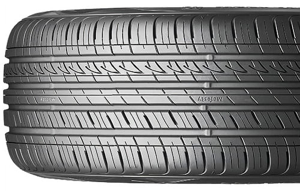 The Kumho Majesty Solus KU50 is a high-performance, all-season tire manufactured for passenger vehicles. The tire offers great all-weather traction. The asymmetric tread design and the all season, silica-based tire compound improve the dry, wet and winter weather road gripping ability. The silica in the compound improves the rubber’s pliability without allowing damaging its traction in various conditions. The Majesty Solus KU50 promotes a lengthened tread life. The special balanced out tire footprint optimizes the tire’s contact with the road surface. This allows the tire to evenly distribute the driving pressure along the tread area. The equally spread-out driving forces prevent uneven tread wear formations, which extends the tread life and the tire’s usability.