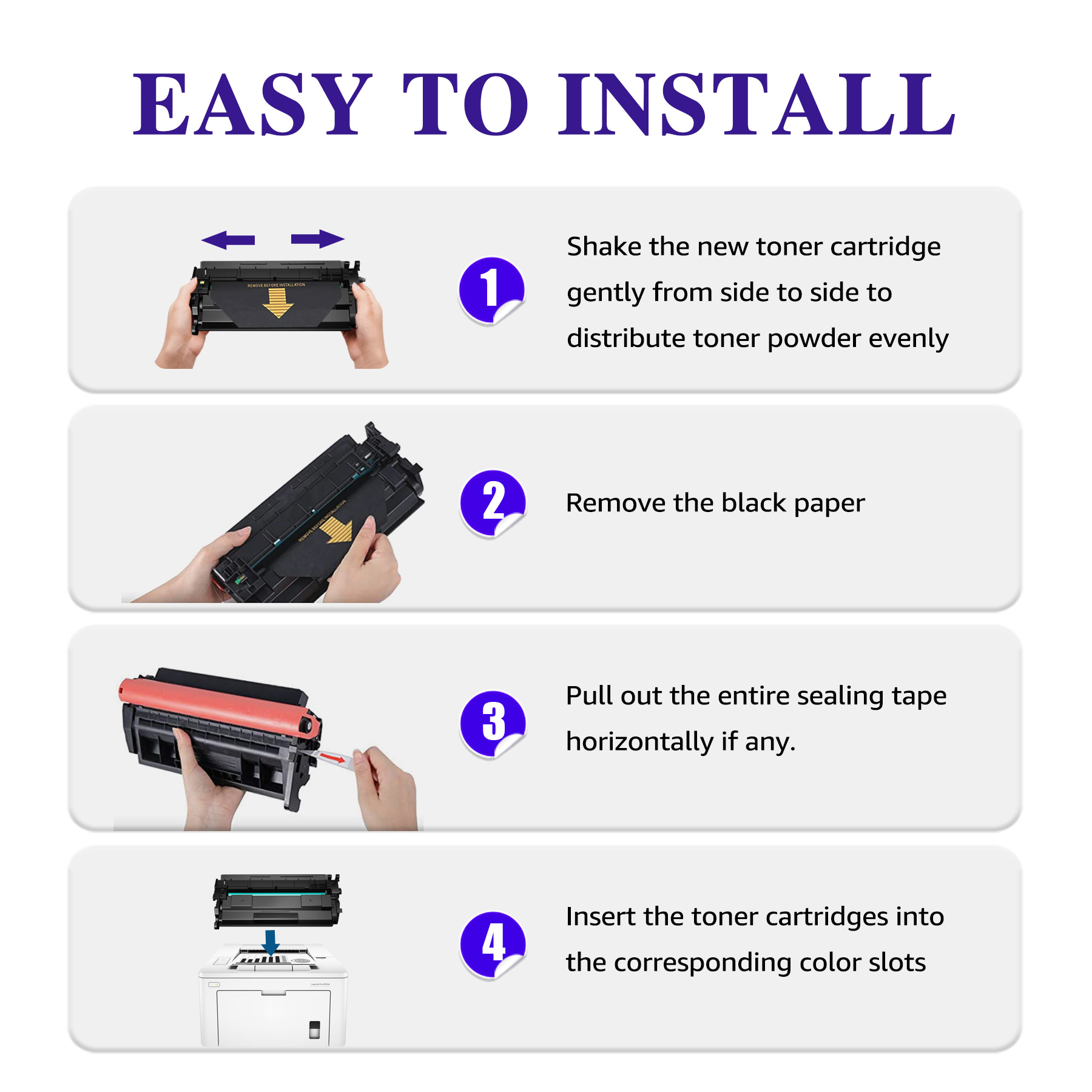 【Latest Chip-Rapid Recognize】Each hp 58a toner cartridge equiped with new smart 4D chip to ensure full compatibility with the hp printer,easy to be installed and recognized , Core technology allows Print quality is clearly visible. 【High Yield】With this 2-pack 58a toner cartridges, you will last up to 6,000 pages! 【Compatible with Printers】 Pro M404dw M404dn M404n M404, Pro MFP M428fdn M428fdw M428dw M428, Enterprise M406 M406dn M430 M430f Printer 【Reliable Quality-No Powder Leakage】Our toner cartridge 58a with chip replacement has obtained ISO-14001/ISO-9001 and MSDS certification. All batches are sampled for 7 producing tests, including printing quality inspection, life test, endurance test, torsional test and drop test, complete without powder leakage and fully adapts to express transportation. 【3 Years Warranty】We offers 3-YEARS warranty,24/7 after sale service, for all the customers of HaloFox. If you have any questions about the installation and quality of products, please contact us through contacting the seller. 【Use Widely】Can be used to print documents, photos, labels (stickers), envelopes, etc. Use it in all the ways you want! 【Easy to Install】 1,Shake the new toner cartridge gently from side to side to distribute toner powder evenly 2,Remove the orange plastic shield 3,Put the new cartridge firmly into the drum unit until you hear it lock into place 4,Install the toner cartridge and drum unit assembly back into the machine