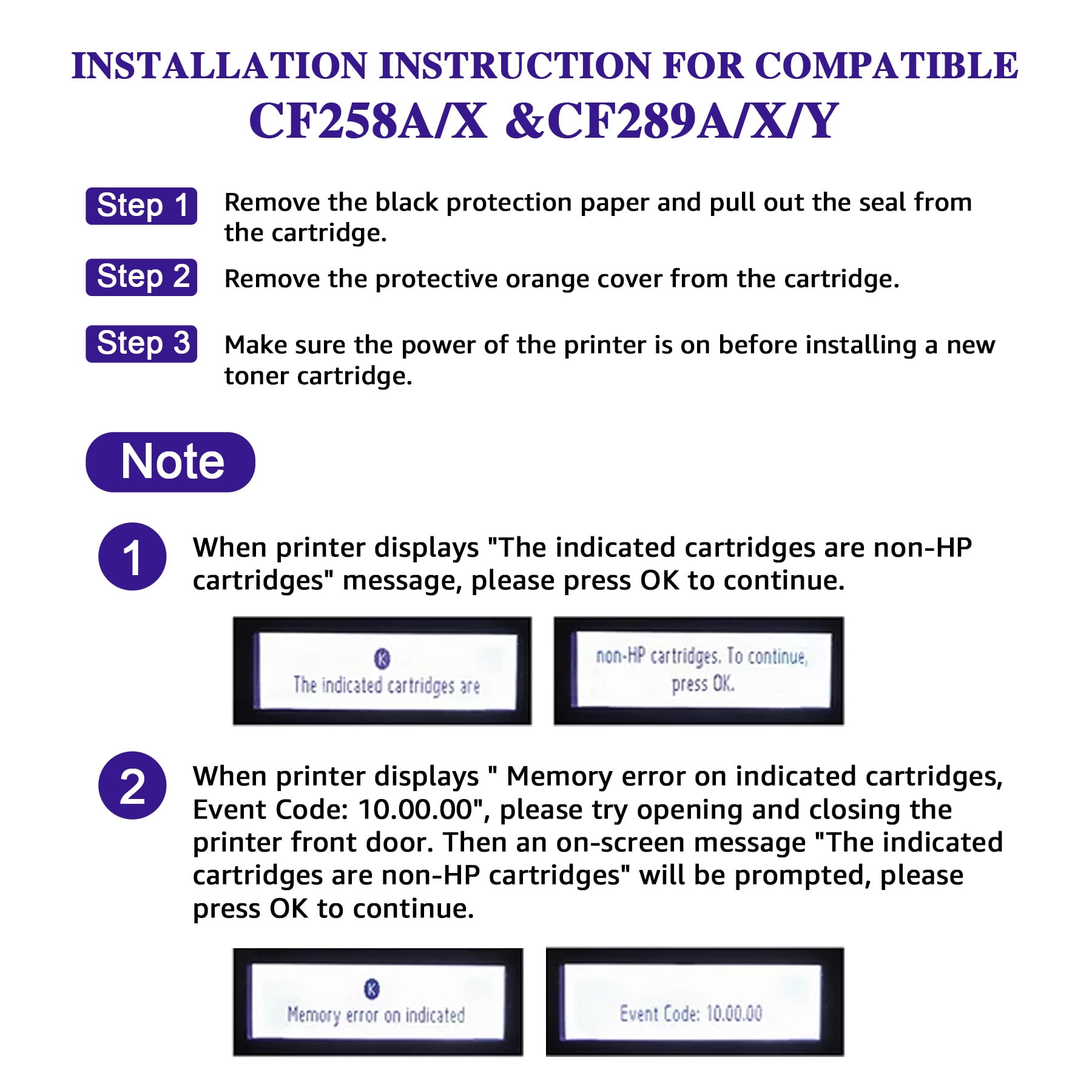 💜Package include:CF258A black *2 Compatible Printers: For HP LaserJet Pro M404dn M404dw M404n Printer For HP LaserJet Pro MFP M428fdw M428fdn For HP LaserJet Pro MFPM428dw Printer For HP LaserJet M304 Printer 💜High Page Yield(5% coverage on A4) : 3,000 pages per Black cartridge 💜Less Price but better product: never worry about leak or fade,we have strict production standards with it. 💜Warm Tip: this is compatible for HP CF258A toner cartridges.please confirm your printer model before ordering.