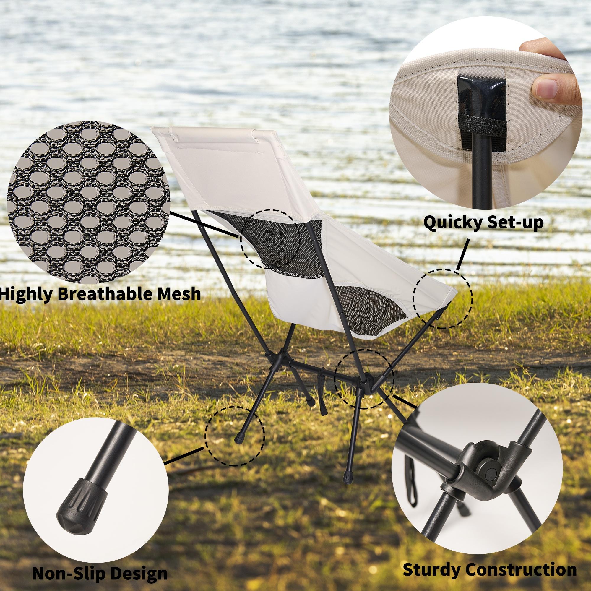 Keeping your back supported Breathable mesh Stable and durable frame Compact and lightweight Come with a carrying bag