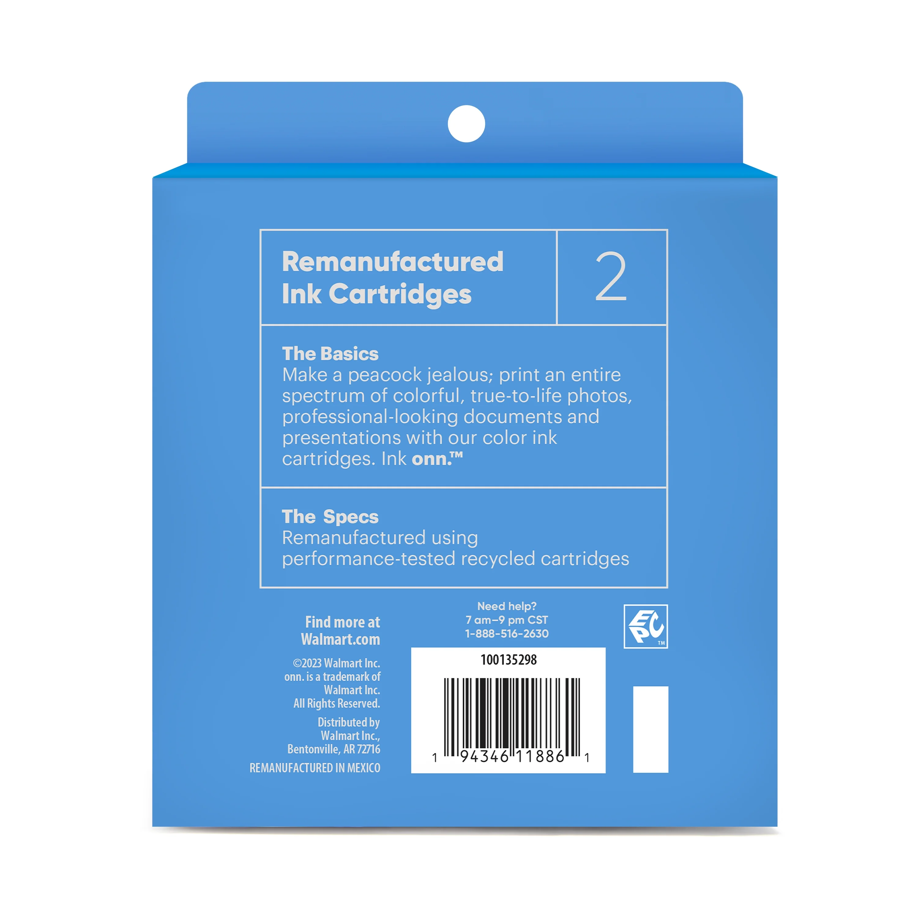 ONN™ brand Ink Cartridges provide high quality and great savings and are an ENVIRONMENTALLY FRIENDLY replacement alternative. The use of this product will NOT void your printer warranty as it is a once-used genuine original that has been refurbished to perform like new. Each cartridge processed has been specifically filled and then tested so it works like the original in your printer. For support on your cartridge, call 877-925-3700; or go online to