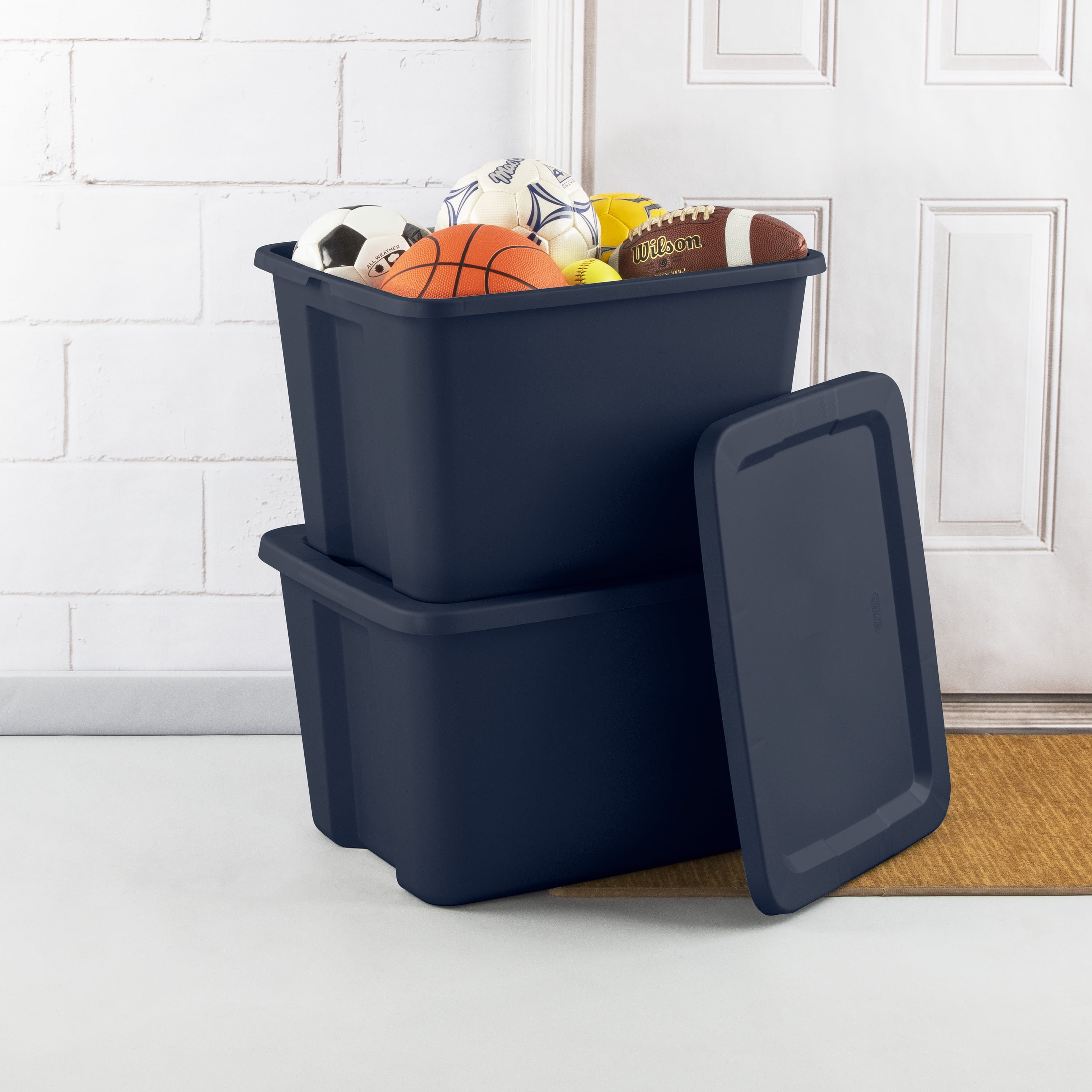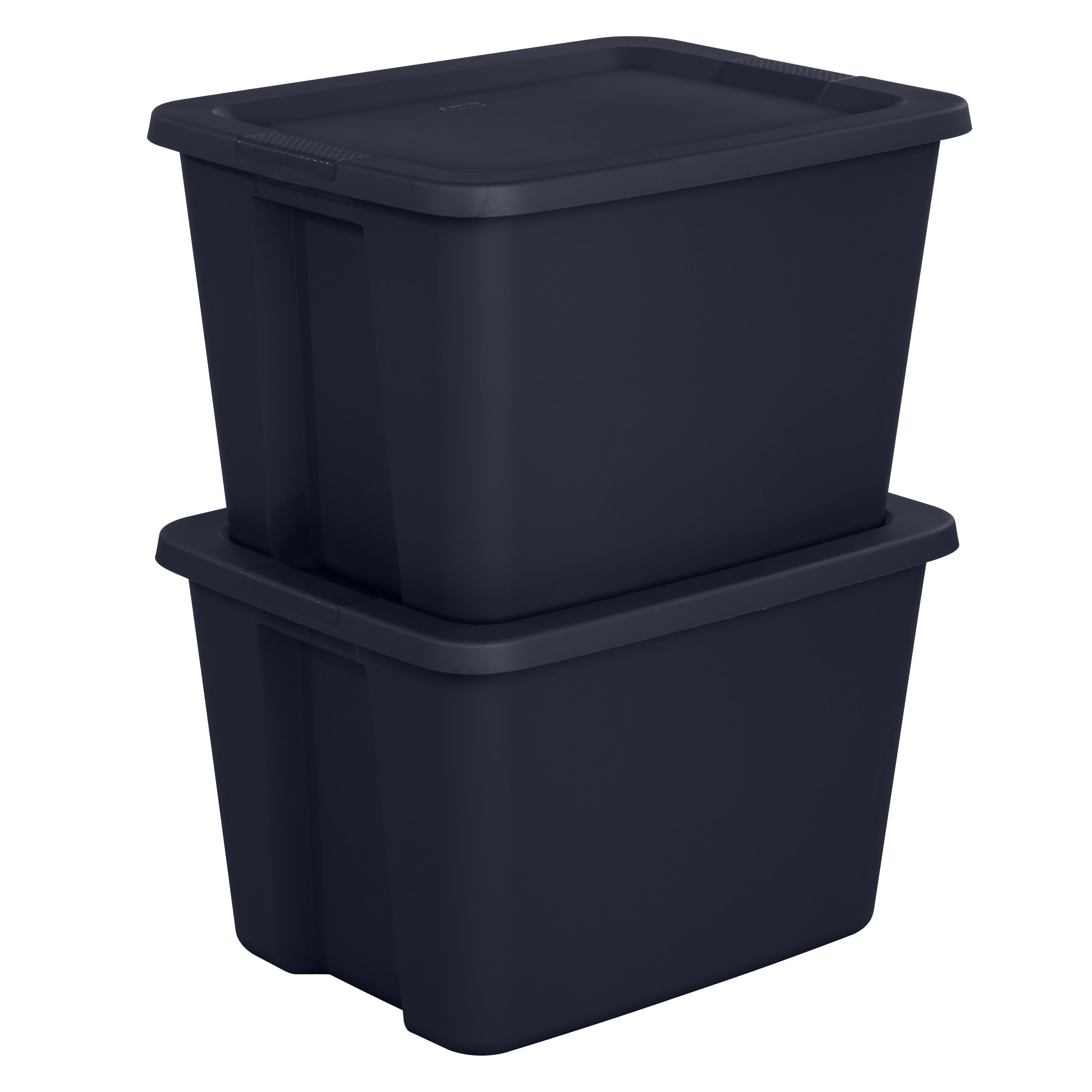 Organize, contain and store it away in Sterilite’s 18 Gallon Tote. This popular size tote is ideal for a variety of basic and lightweight household needs, such as sorting and storing clothing, toys, linens, craft supplies, seasonal decorations and more! The simple squared off design offers a space efficient shape, and a broad rim for added strength. The lid securely snaps to the base, keeping contents safely in place and concealed. The contoured end panels and textured in molded handles provide a comfortable grip for lifting and carrying, making transporting the tote easier, whether moving into a dorm or storing away belongings in the attic or basement. The deep recessed surface of the lid allows totes to stack neatly on top of each other for efficient use of vertical storage space. When storing items away, use good judgment and don’t overload them or stack them too high; be mindful of the weight in each tote and place the heaviest tote on the bottom. The overall assembled dimensions of this item are 23 1/8″ L x 18 1/8″ W x 14 7/8″ H.