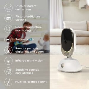 Moto VM85-2 Connect Monitor 5.0” Wi-Fi® Video Baby Monitor with Mood Light – Two Camera Set, White