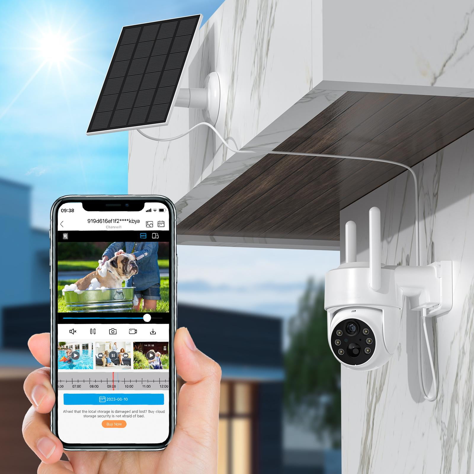 (2 pack) TopVision Outdoor Surveillance Camera, 360° Pan & Tilt, 2K Resolution, Weatherproof, Solar Panel, White