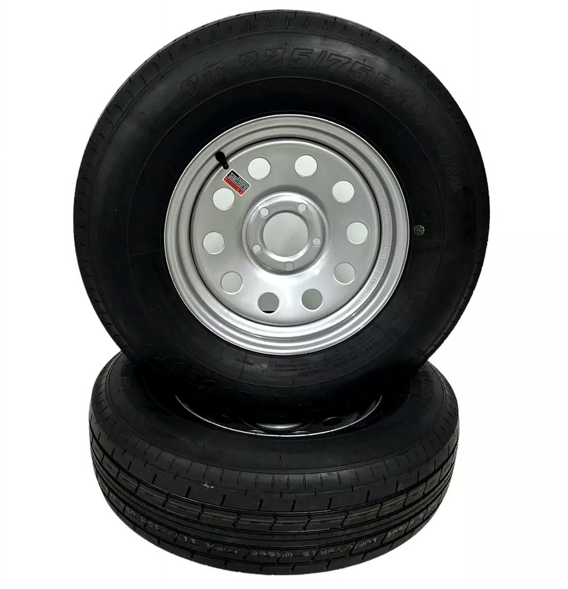 2-Pack Trailer Tire on Rim ST225/75R15 TrailQuest LRE Radial 10 Ply 5 Lug Silver Modular Wheel 5X4.5″ Bolt Pattern