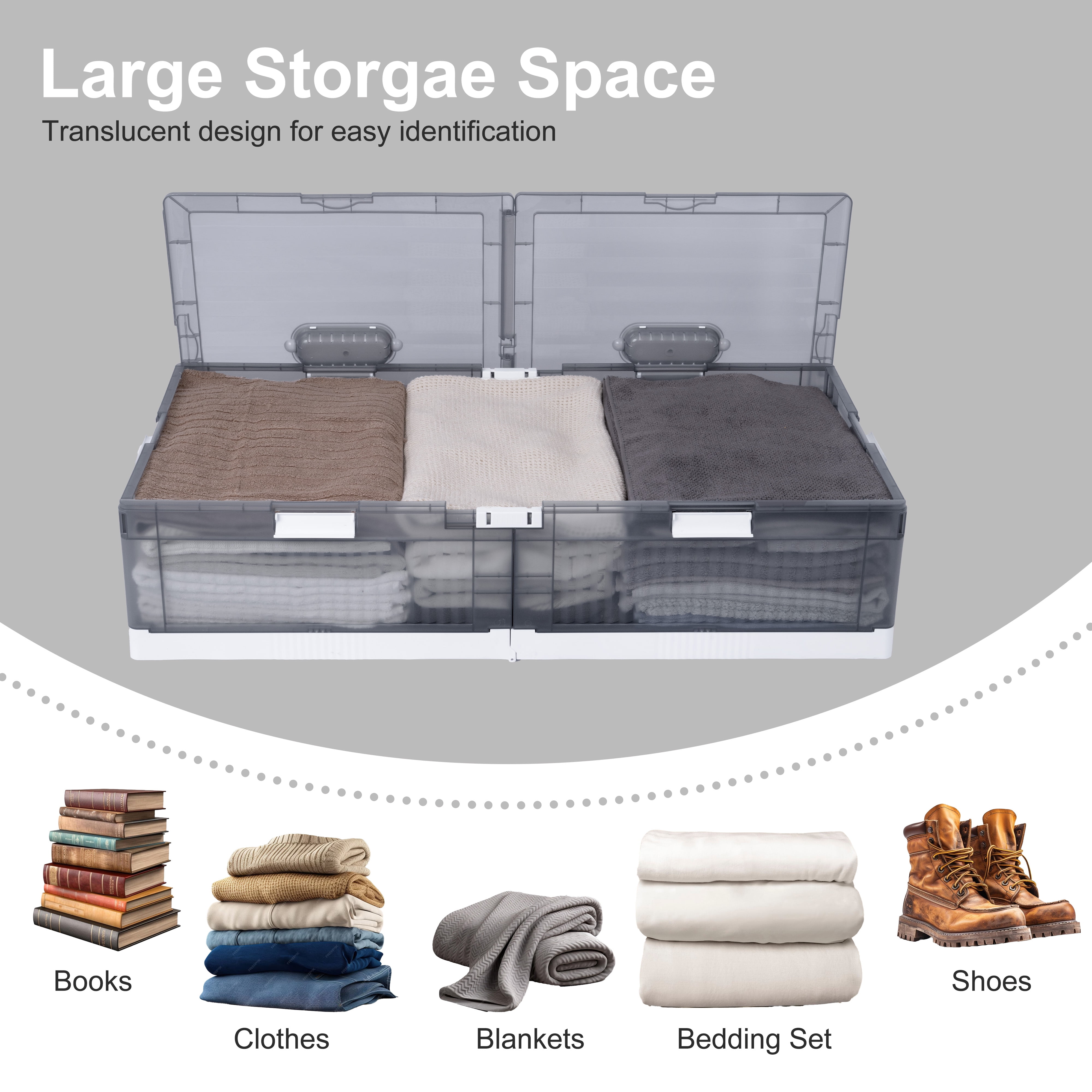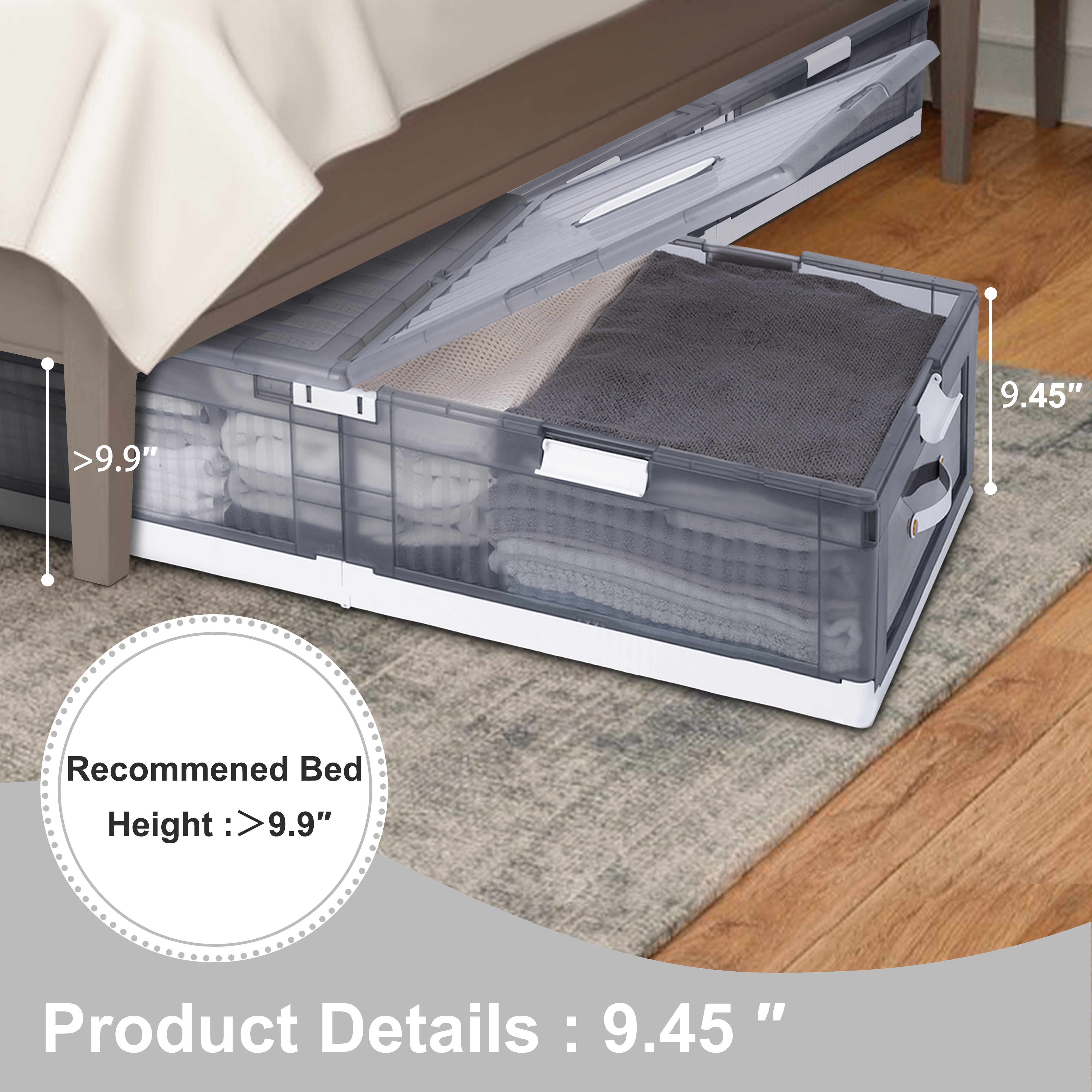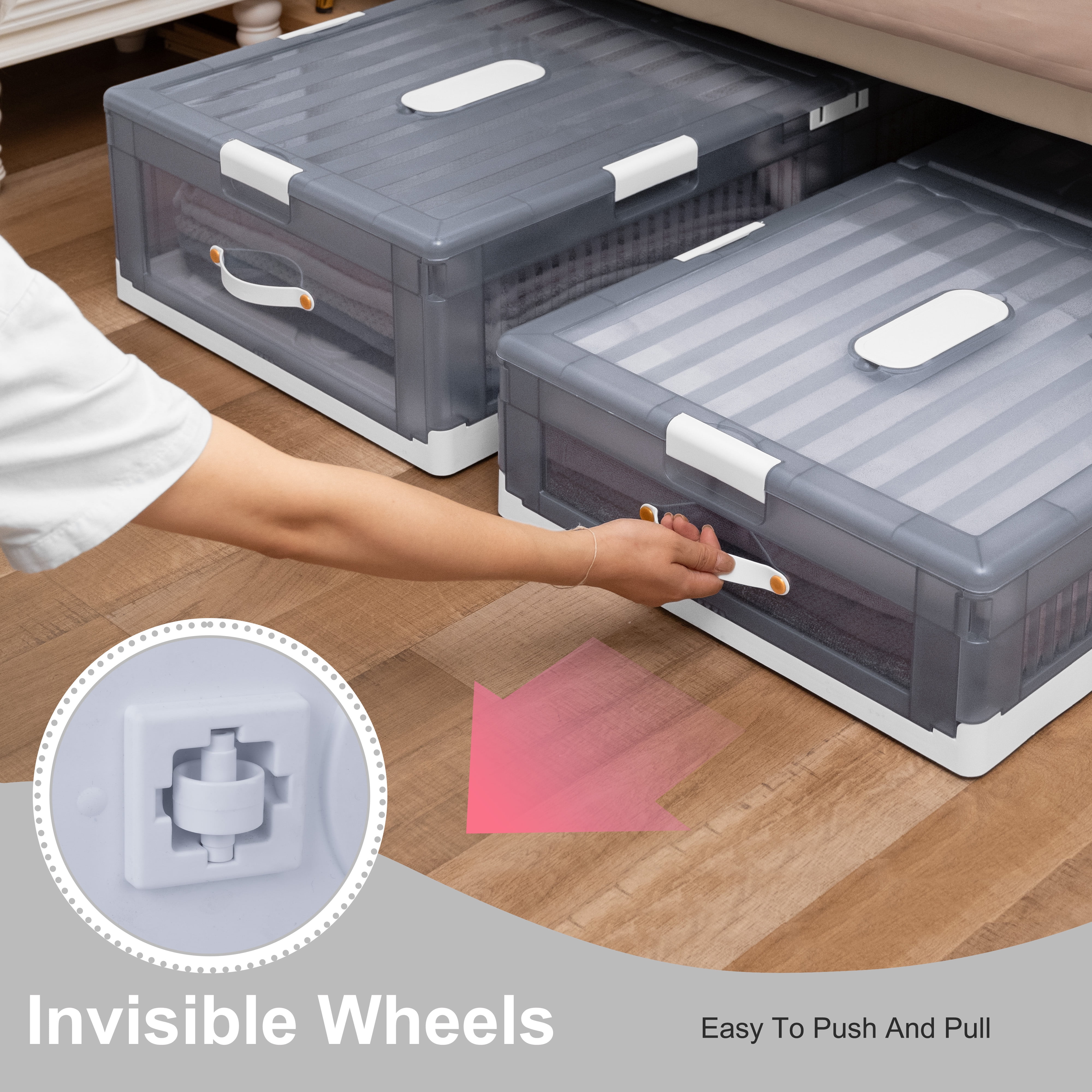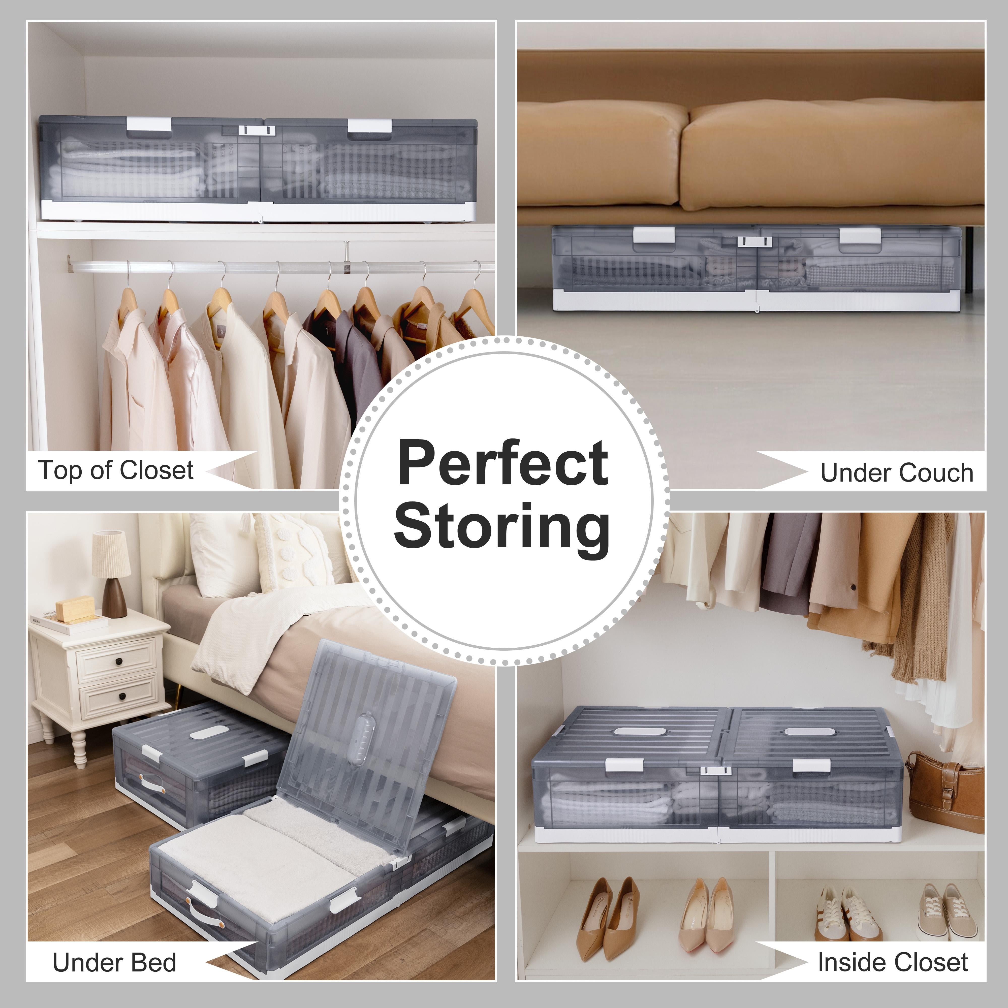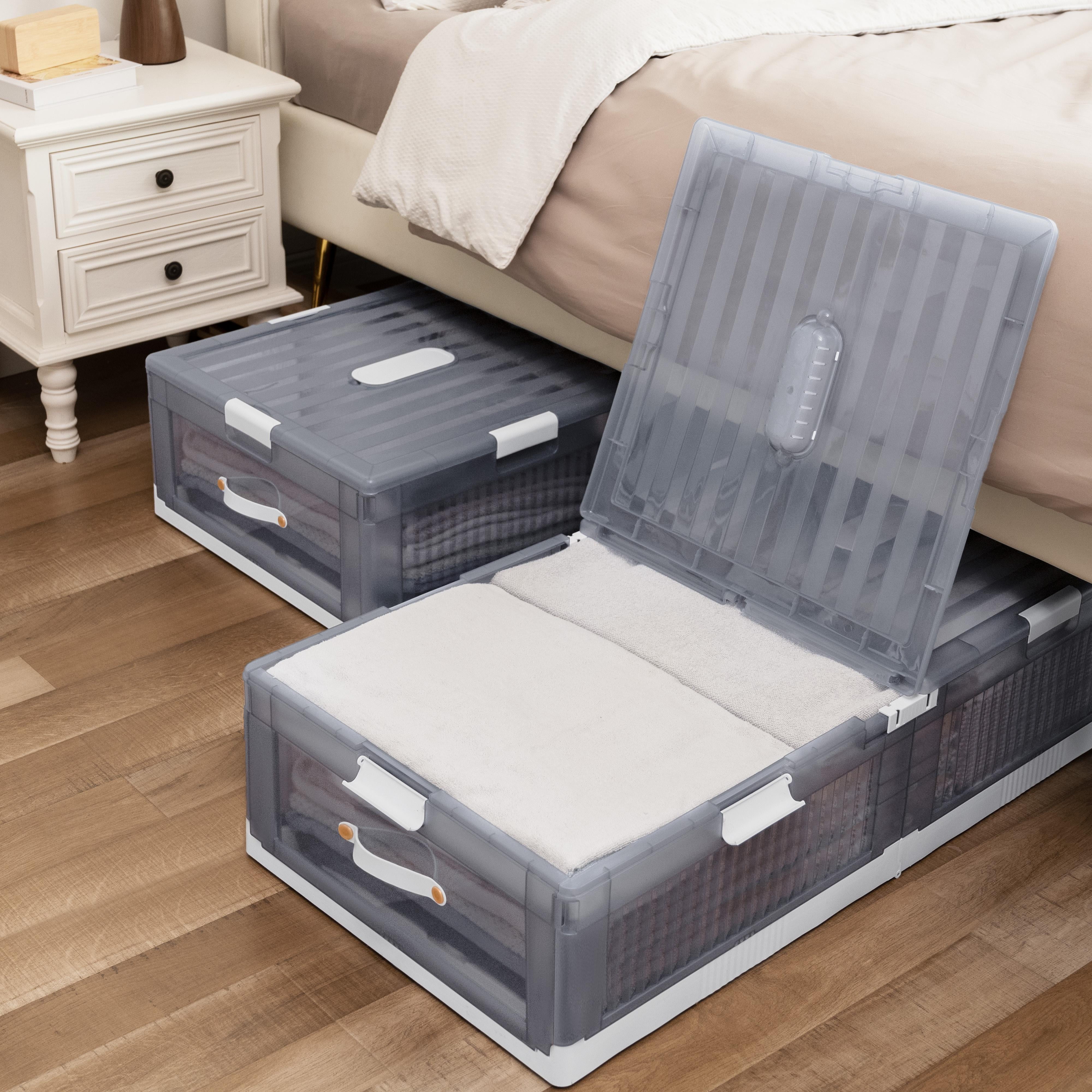 Upgrade your under-bed storage with our durable plastic container, designed to add a touch of sophistication to your space. Its translucent build allows for easy content identification, while its sturdy construction and rigid shape accommodate both soft and hard items. Equipped with smooth-gliding wheels, effortlessly retrieve items from under your bed or couch without straining your back or damaging floors. Available in shallow and deep sizes, this container caters to a variety of storage needs. Collapses flat for compact storage when not in use. Also stackable for efficient organization, it’s not only perfect for under-bed storage but also ideal for basement, garage, and attic organization.