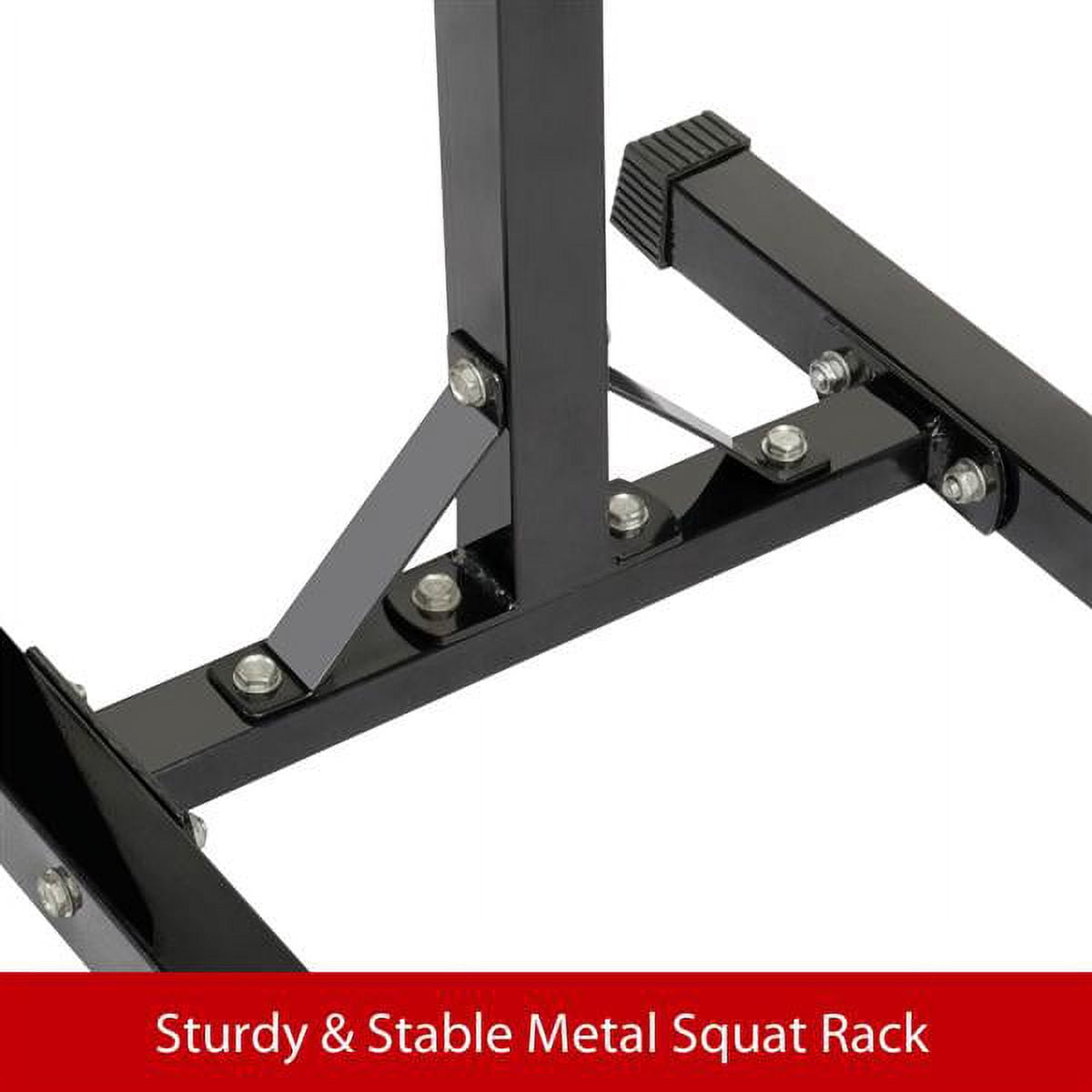 2-Piece Adjustable Squat Stand Rack or Barbell Free Press Bench, Black: G.W.: 19.9 Kg/ 43.9 Lb Material: Metal Black Finish Max Load: (Approx.) 200 kg / 441 lb Overall Size (Approx.): 54.5 x 50.5 x (114-179) cm/ 21.5 x 20 x (45-70.5)” (LxWxH) Adjustable Height (Approx.): 114-179 cm/45-70.5″ Base Size (Approx.): 54.5 x 50.5 cm/ 21.5 x 20″ (LxW) Square Tube (Approx.): 5 x 5 cm/2 x 2″ Hole Spacing: 5 cm/2″ Color: Black Quantity: 2PCS Please Note: Please allow slight measurement deviation for the data. Thanks for your understanding! Package includes: 2 x Squat Stands and 1 x Instruction For added safety and stability, this adjustable squat rack uses selective metal nuts paired with quality washers