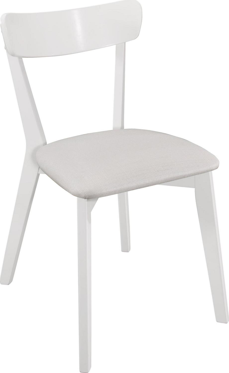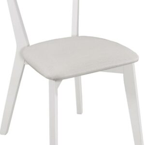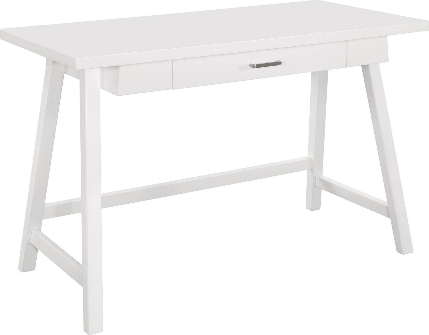 – Artisan two-piece set includes writing desk and chair in white Clean design includes one (1) drawer with full extension glides Matching chair with white fabric upholstered cushion Rubberwood and MDF construction Wood finish: White Hardware finish: Chrome