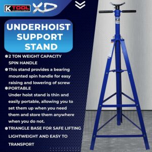 – SUPPORT CAPACITY – K Tool under hoist stand is rated to support 2-ton capacity. The stand is designed to support under car components
