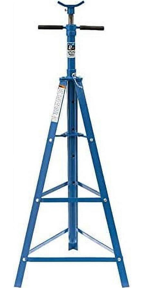 Features and Benefits: 2 ton under hoist stand designed to help stabilize a vehicle suspended by an above-ground liftSupport range from 49″ to 79-3/4″Acme threaded screw for 8″ of fine adjustmentBearing mounted spin handle for easy raising and lowering of screw24″ triangle shaped base and 3.25″ square saddle provide additional stability