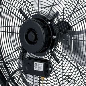 – This fan is IPX4 water-resistant and outdoor rated with a durable powder coated steel construction. It can withstand wet climates and harsh conditions and is a strong match for your rugged workshop. For added protection, it comes with a GFCI plug to protect against shock injuries. It is an ETL certified product, so you know you can trust its abilities and use it with confidence.