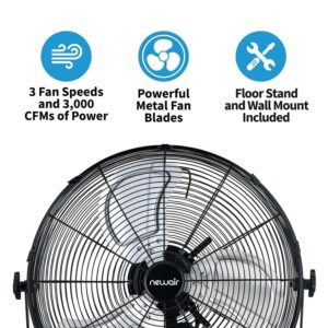 20 in. Outdoor Rated 2-In-1 High Velocity Floor or Wall Mounted Fan with 3 Fan Speeds and Adjustable Tilt Head – Black