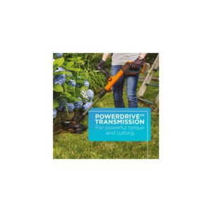 - PowerDrive Transmission increases torque for more cutting power at the string