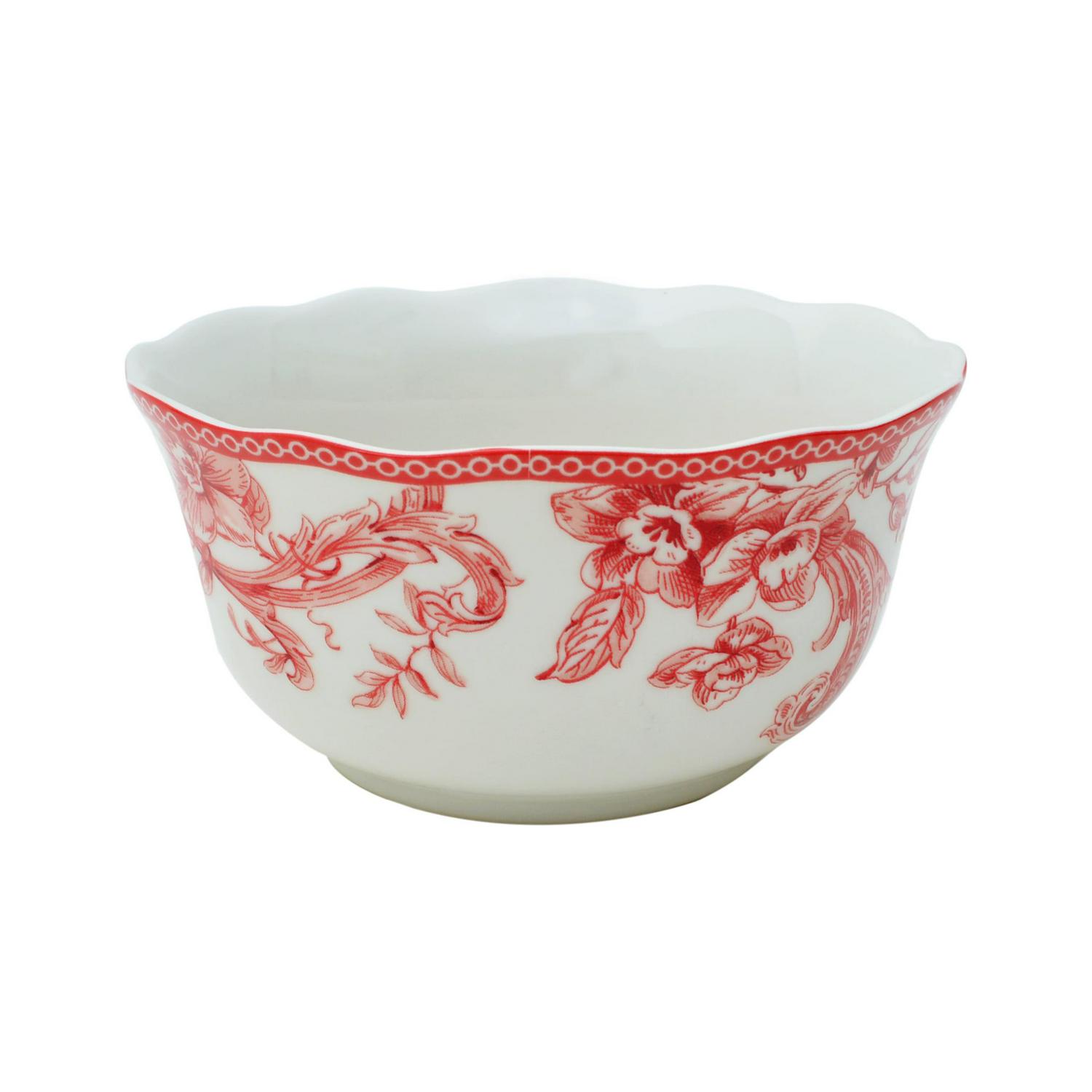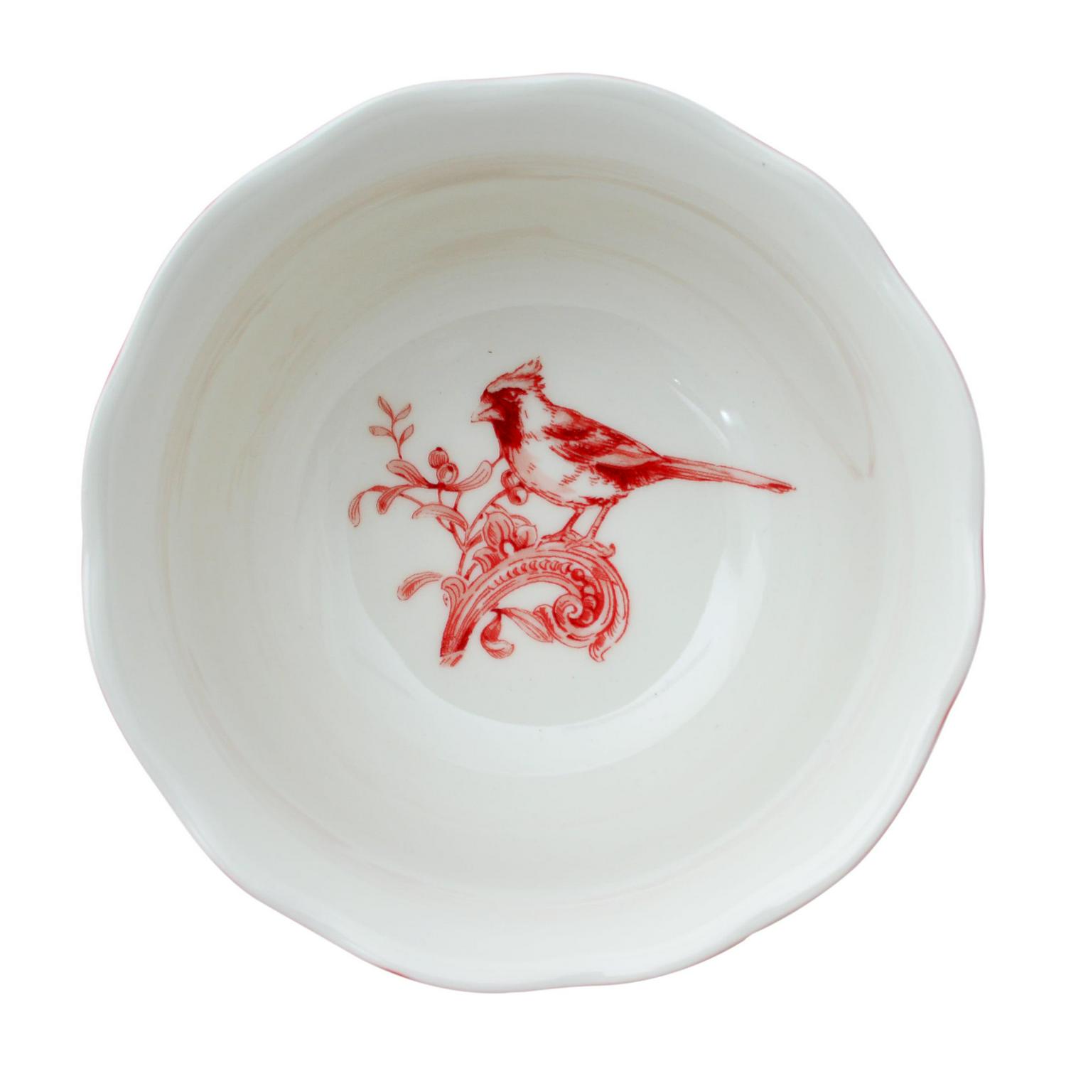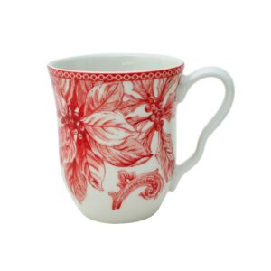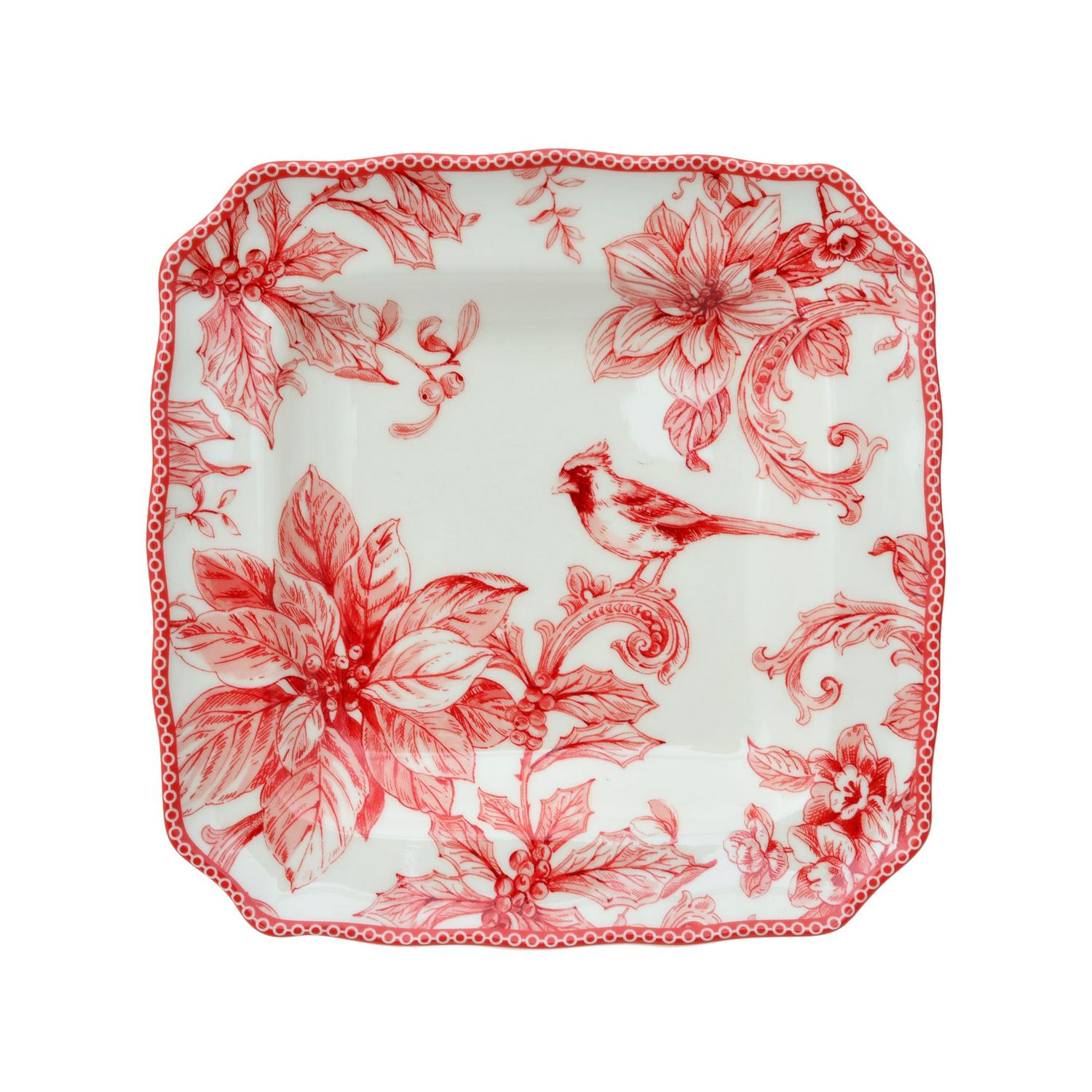 The Christmas Lane dinnerware collection by 222 Fifth is a delightful way to infuse your holiday table with cheer and brightness. Drawing inspiration from the beloved Adelaide dinnerware sets, this collection captures the essence of a winter wonderland with its charming design. The Christmas Lane collection features a captivating winter woodland scene, complete with sprigs of holly, vibrant poinsettias, and a cheerful cardinal. This charming design brings the magic of the season to your table. Set against a backdrop of lovely ivory porcelain, the winter woodland scene takes center stage, creating a harmonious and visually appealing composition. The stylish scalloped red border frames the design, adding a festive and elegant touch that complements the holiday theme. The form and color of the pieces in the collection provide a modern twist on the timeless appeal of Toile patterns, offering a fresh and updated take on a classic design. With four square dinner plates, four square salad plates, four bowls, and four mugs, the set provides a complete and coordinated ensemble for your holiday table. The Christmas Lane dinnerware collection captures the essence of the holiday season, expressing the joy, warmth, and comfort of coming home for festive celebrations. The combination of modern elements and traditional design inspirations makes the collection adaptable to various table settings, from formal dinners to cozy gatherings.