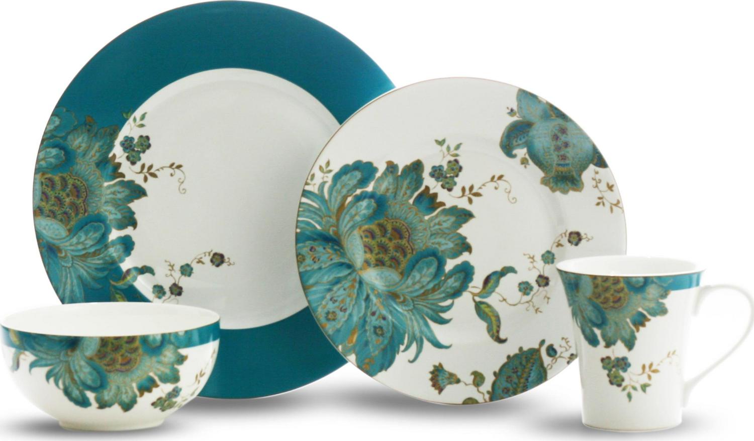 222 Fifth Eliza Porcelain Dinnerware Set, 16-piece, Blue/Multi