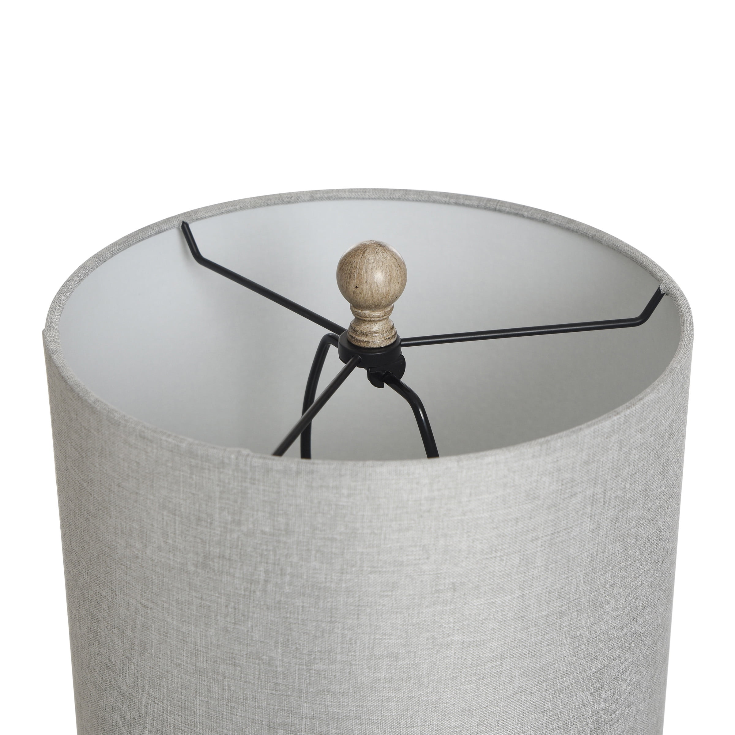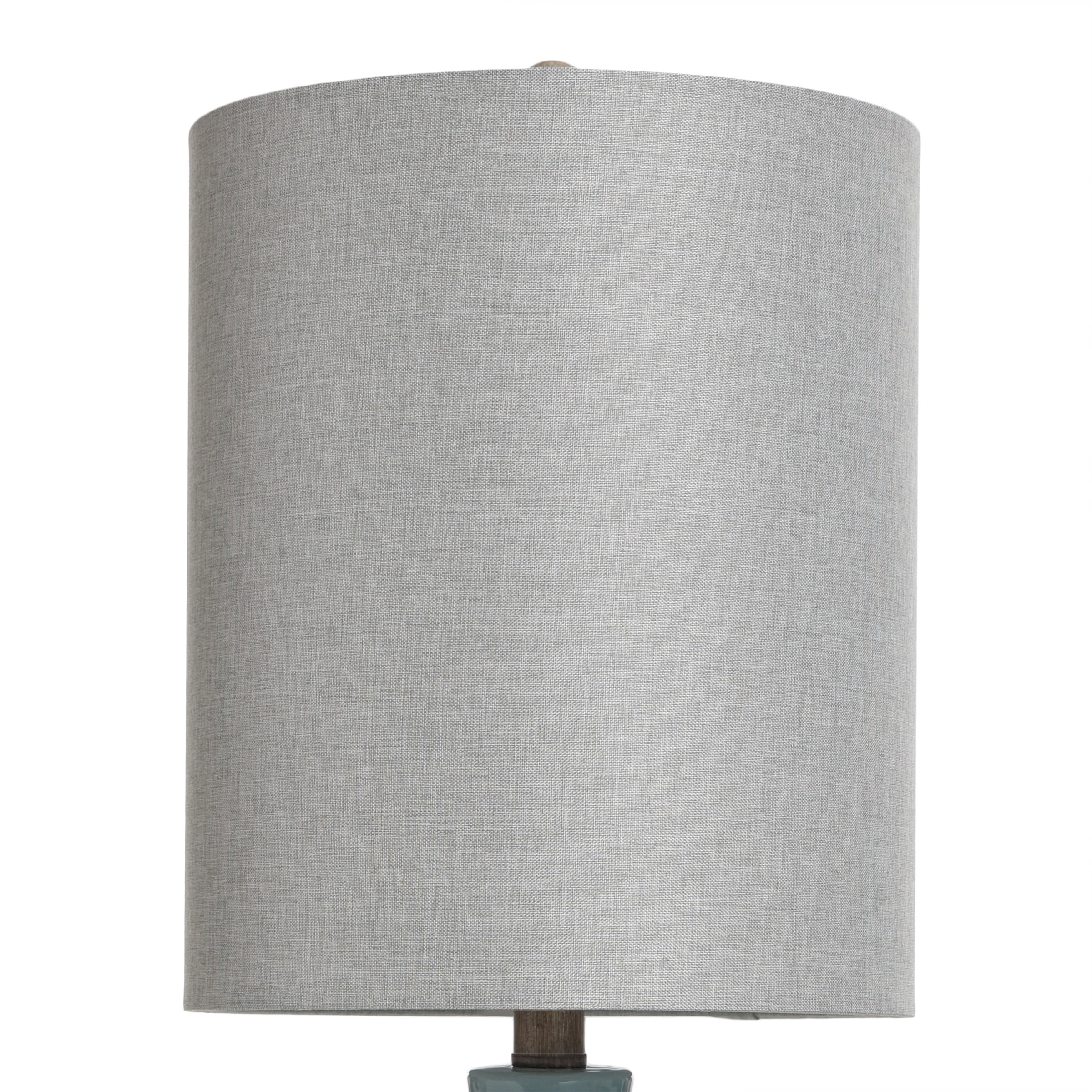 Made from ceramic and fabric Requires one maximum 100-watt E26 medium base bulb (sold separately) 5-foot of cord Voltage: 120V Hardback fabric shade in white Shade is 10″ wide x 12″ high
