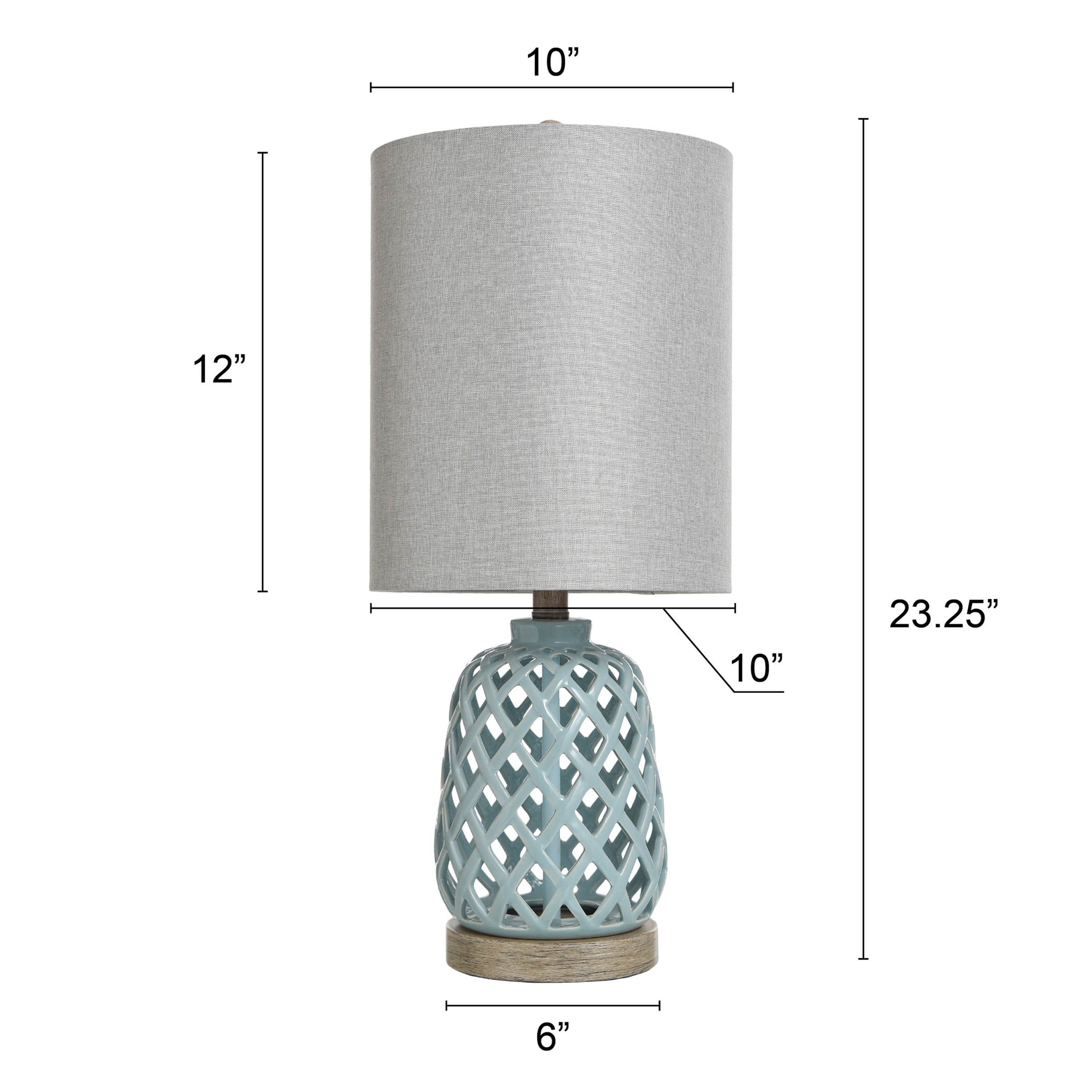 A cool new take on a vintage style, this ceramic table lamp is finished in a soft blue for a standout quality that’s equally easy to match. Made to meet exacting artisan standards, this lamp is designed with an open lattice body and fabric hardback shade in white. It’s a bold selection for bringing life to tabletops throughout your mid-century inspired decor.