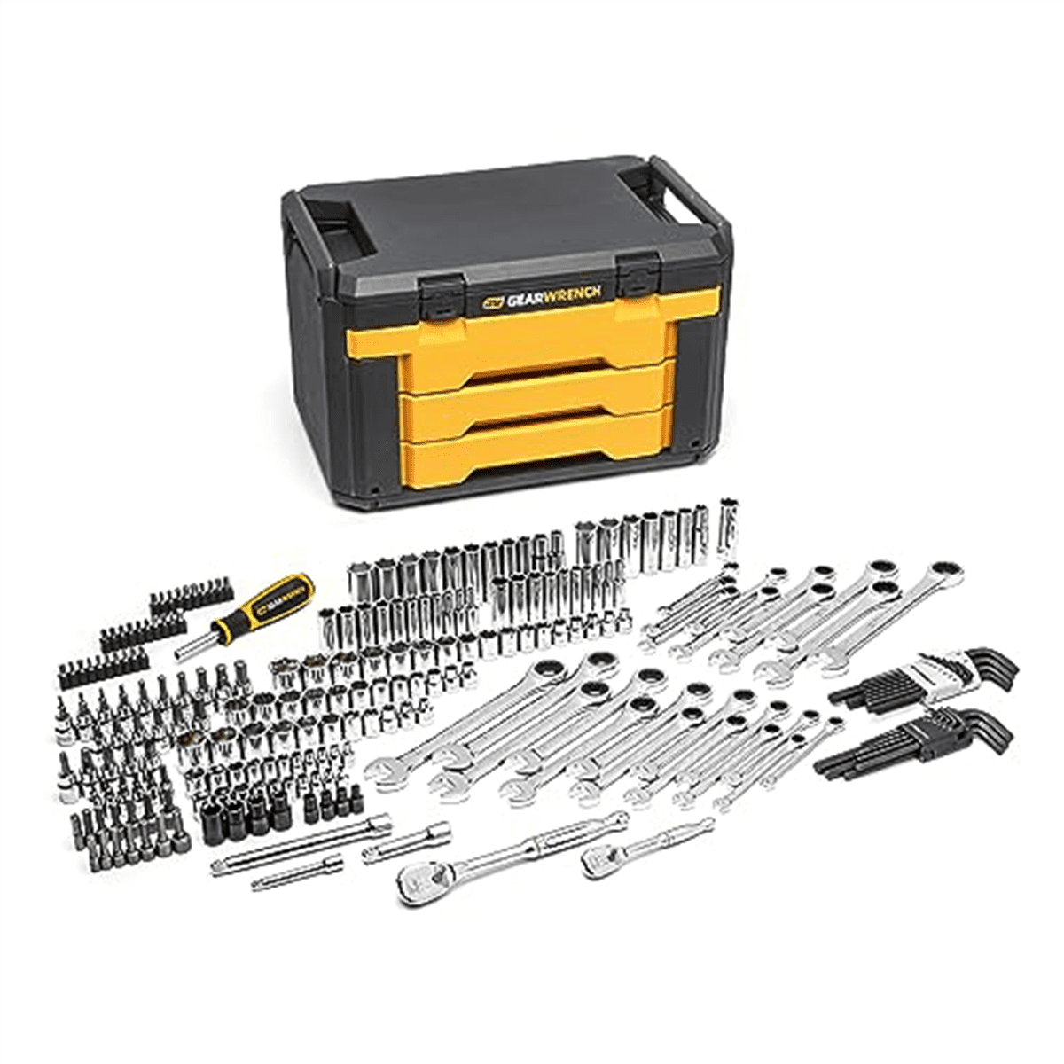 - Set includes comprehensive bit socket offering including: hex bit, TORX® bit, and E-Torx® sockets