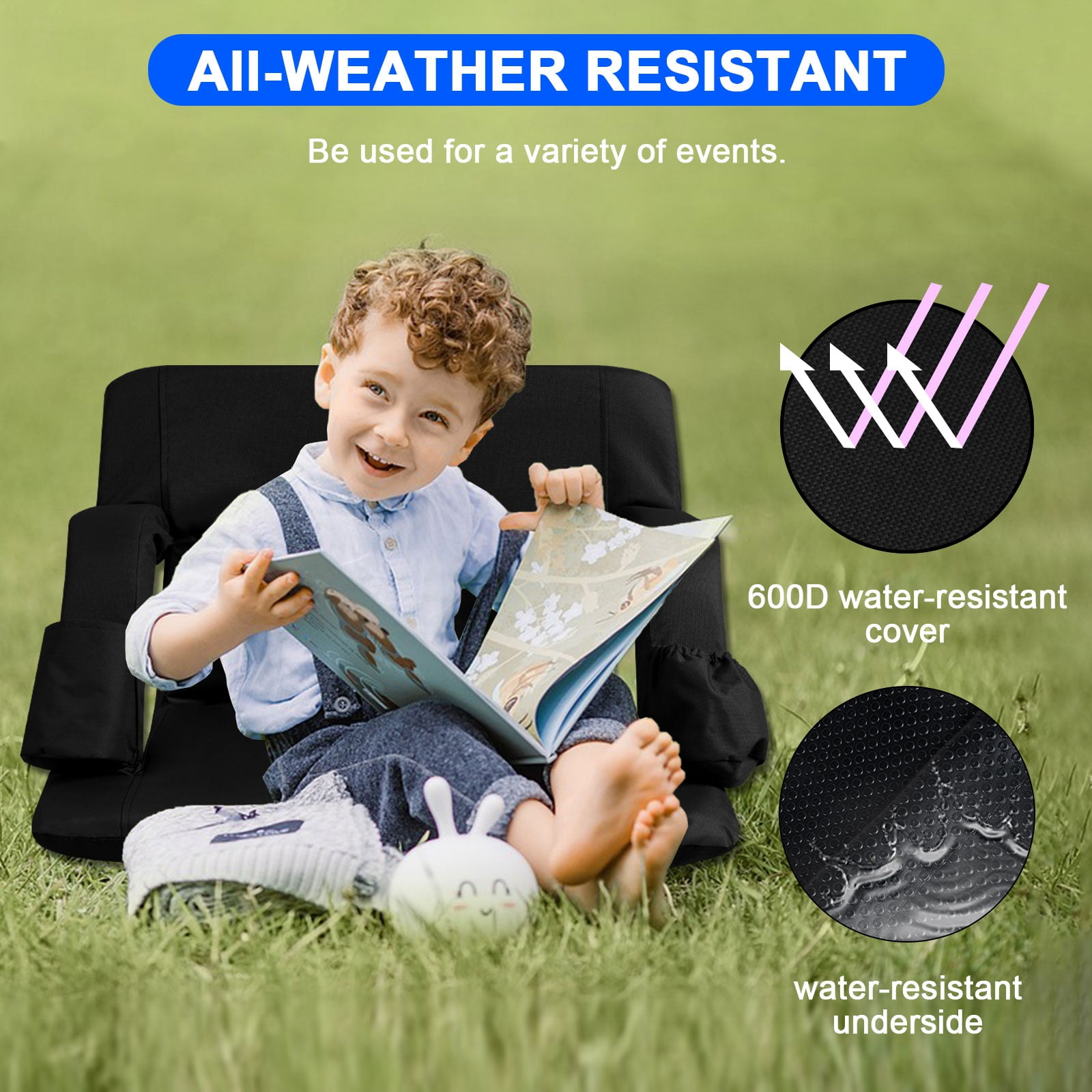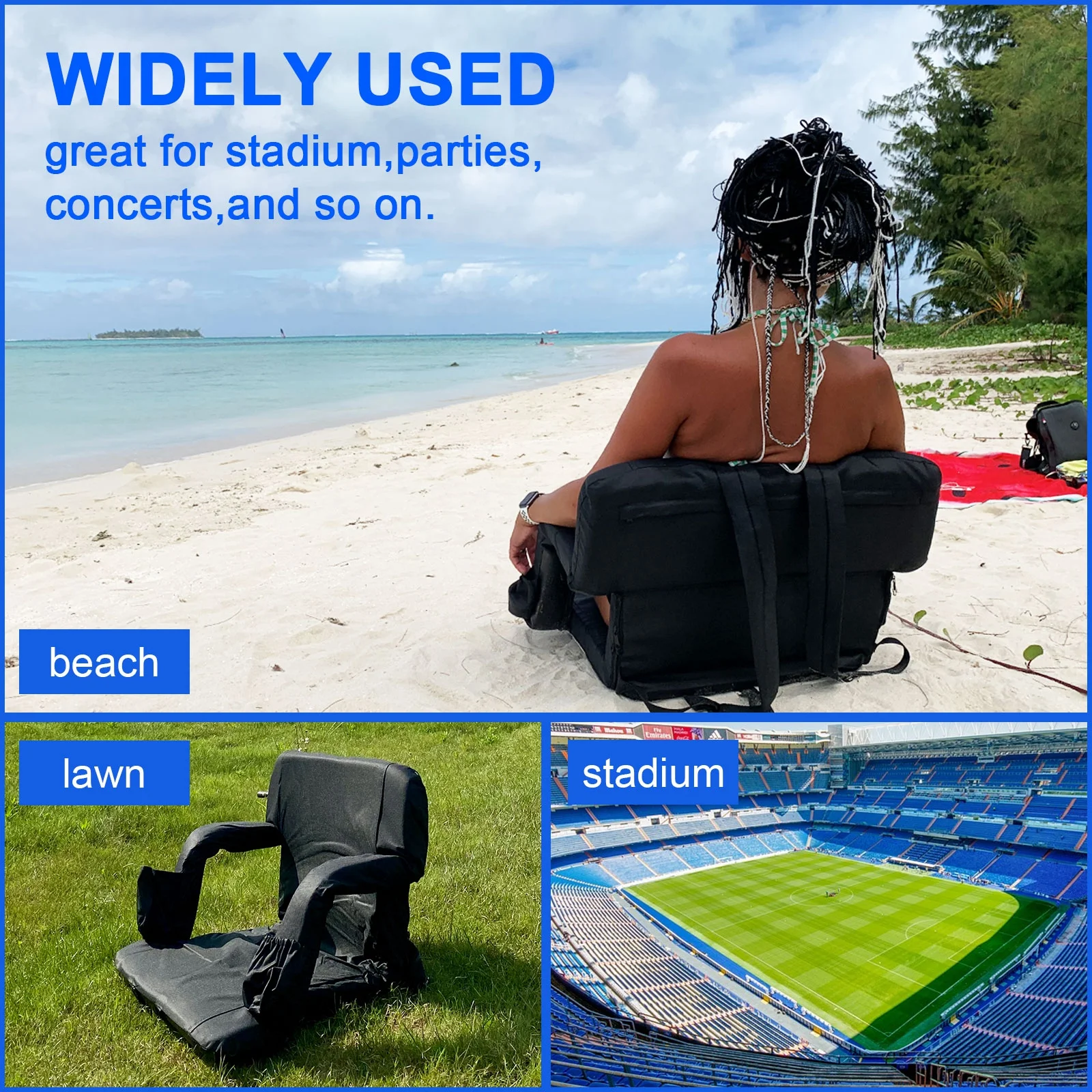 24.4″ Wide Stadium Seat For Bleachers With Back Support 6 Reclining Options&Invert Armrest,Folding Bleacher Chair Comfortable Cushion,Water-Resistant,Portable For Sporting Events,Camping