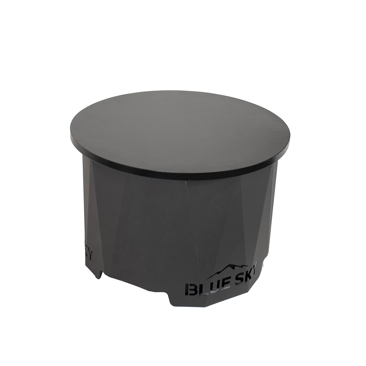 Extend the use of your fire pit with this steel lid. This lid turns your fire pit into a coffee table or multipurpose surface when not in use. All steel construction, with a slight angle, allows rain and water to drain off. The inner frame of the lid holds it on the firepit and keeps it in place. This lid can be used with The Peak Smokeless Patio Fire Pit 2.0 Series (PFP2216), as well as other fire rings or fire pits (sold separately).
