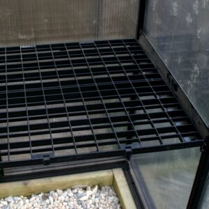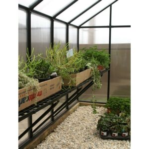 The Monticello 24 foot Work Station Kit is specifically designed for the Monticello line of 24FT greenhouses. The design is simple, unique and thoughtful. The Work Station can be installed either during initial construction or at a later time. The Kit Includes a full 24 ft run (24 deep) for use on either side of the Monticello greenhouse. Since the installation of the support bars uses the inside bolt tracks the shelving could be set at any height within the greenhouse (up to 4ft off the ground). The sturdy vented shelving units on the Work Station are constructed from commercial grade high impact PVC. The vents allow water and air to circulate as well as allowing sunlight to reach underneath the Work Bench. The angle support design allows for free flowing movement without concern for support legs to trip over when working at the workbench.