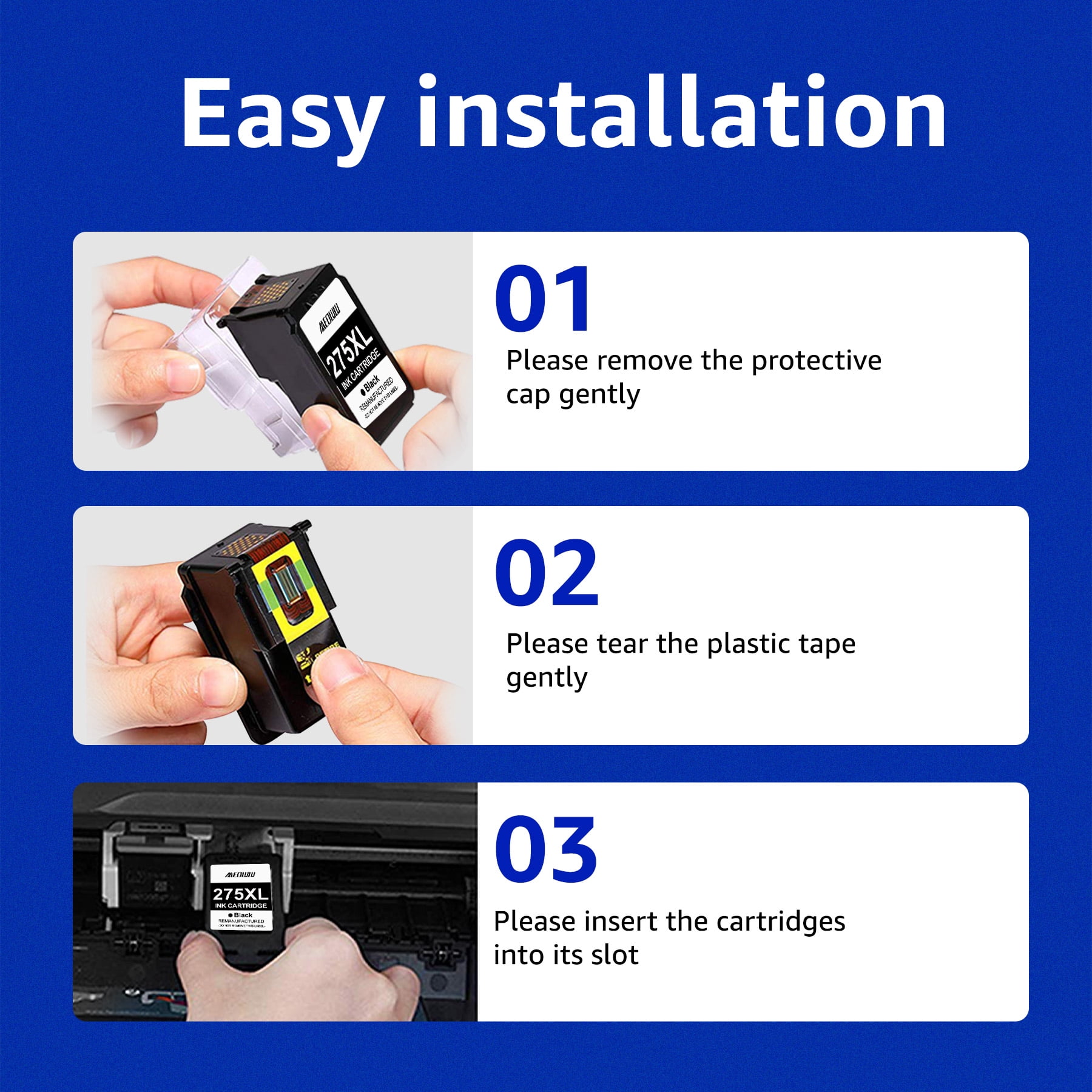 High Page Yield: 500 Pages per PG-275XL Black Ink Cartridge, 450 Pages per CL-276XL Color Ink Cartridge at 5% coverage of A4 Paper Package Contents: 275XL 276XL Ink Cartridge Combo 4 Pack ( 2 black and 2 color ) Printer Compatibility: Canon PIXMA TS3500 Series: Canon PIXMA TS3522, Canon PIXMA TS3520, Canon PIXMA TR4700 Series: Canon PIXMA TR4720, Canon PIXMA TR4722 Printer 24 Month warranty and free exchange for defective cartridge. Please feel free to contact us if have any questions, our professional after-sales team will serve for you