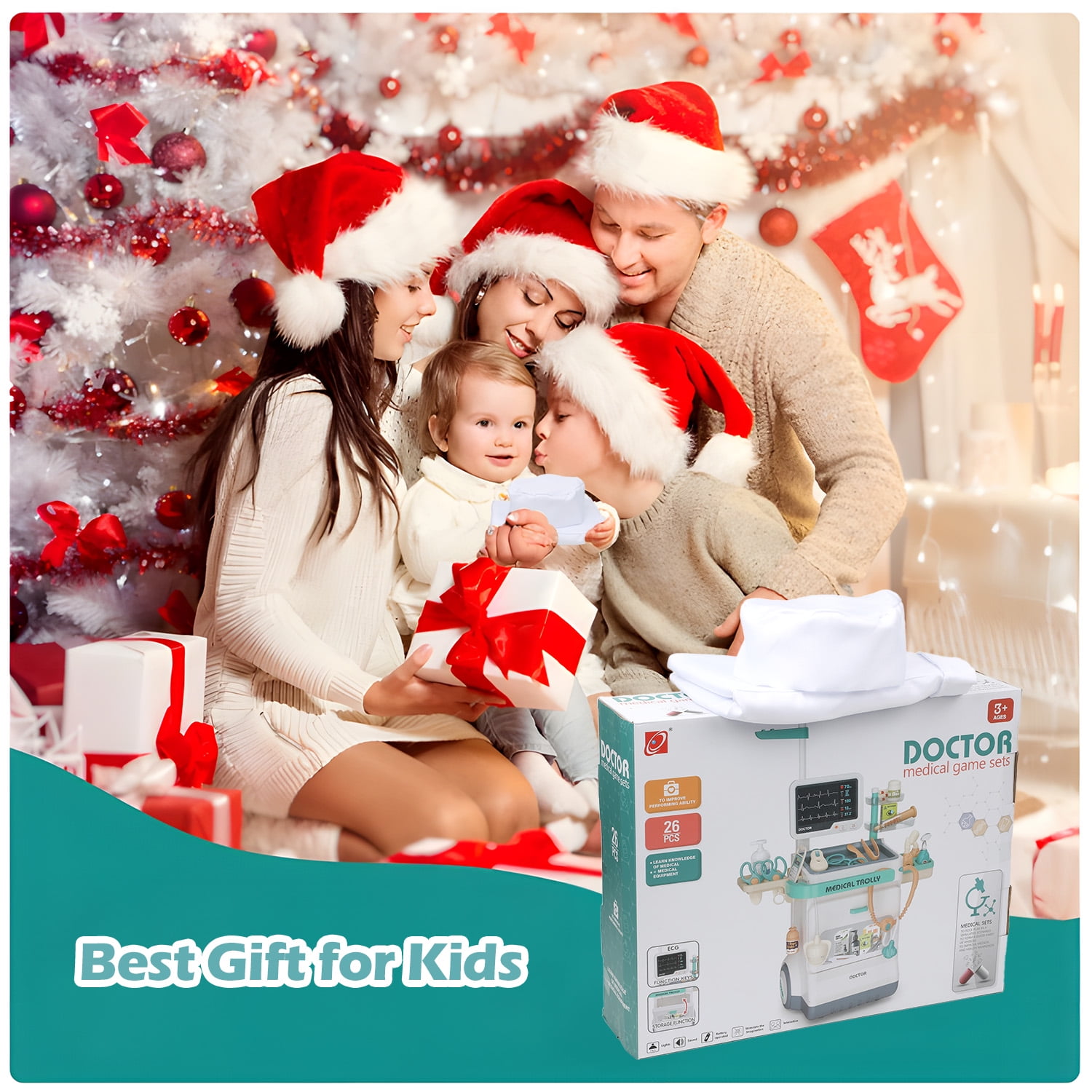 Petbank 28PCS Doctor Kit for Kids, Pretend Medical Station Toy Set for Girls Boys, Mobile Cart Doctor Role Play Toys for Toddler Gift Age 3+