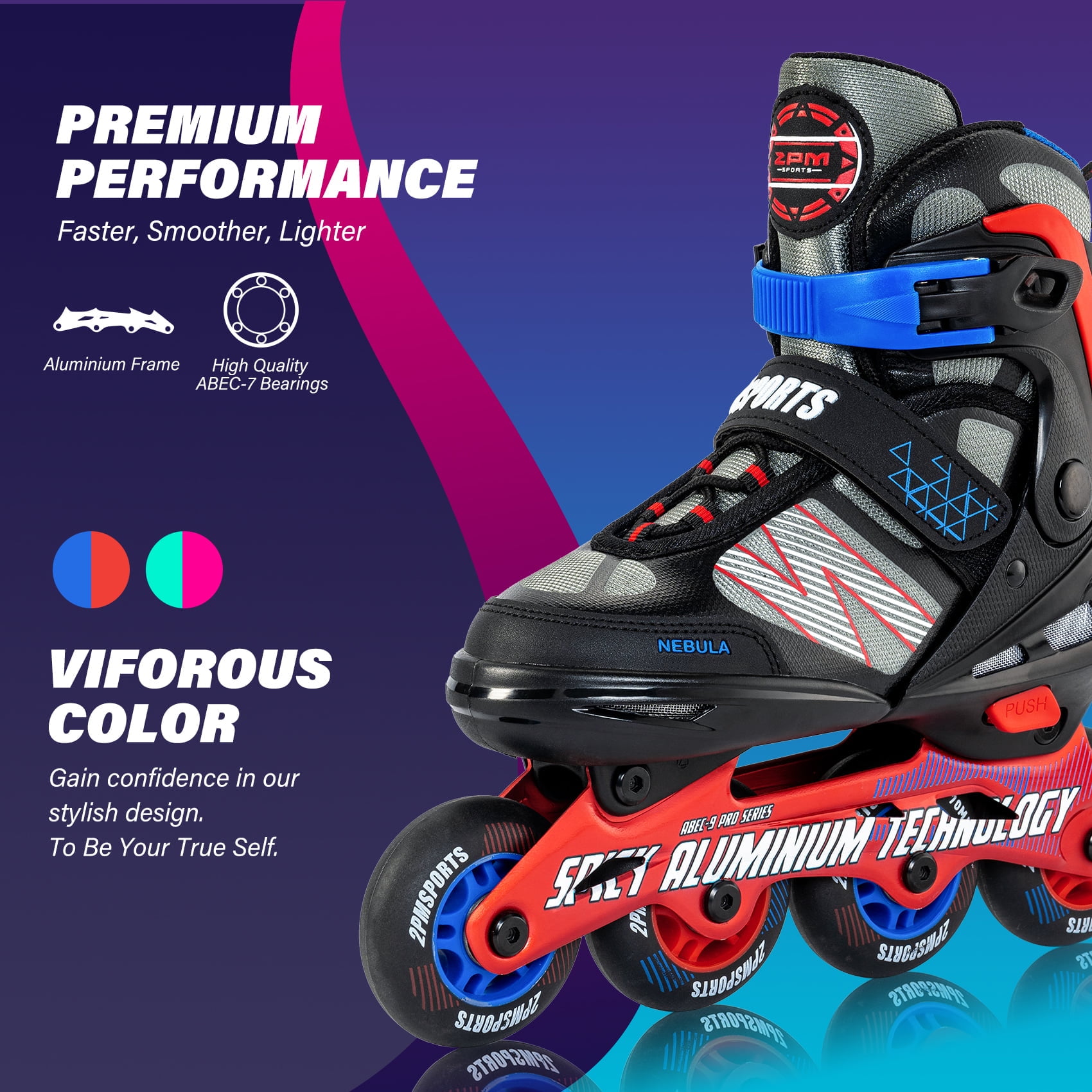 As the summer is coming, get your boys a perfect pair of skates to feel the wind blow on these sun-filled days.The 2pm Nebula inline skates is an excellent choice for kids who want to get into skating, and you will love them for their great value.With our special light up bonus, she can not only have fun during the daytime, but also become a shining star at night!She will love our inline skates that are sure to keep her feet comfortable as she learns the basics and makes progress.The skates will help her hone the skills and gain confidence in the stylish design and encourage her to pick up the skills continually to become an awesome skater.This pair is simply the best for any kid who loves spending time outdoors in the summertime.Don’t hesitate! It is sure to exceed your little one’s expectation!