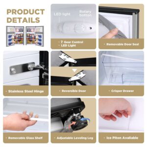 Keep All Your Convenience in Mind: Stop worrying about the hassle of cleaning the fridge. This compact refrigerator with freezer comes with 2 detachable glass shelves and a glass shelves for making your food organized the actual storage needs cleanup easily than ever. LED lighting makes it easy to search what you need at night. With the special reversible door design, it is friendly to accommodate both right and left-handed users.