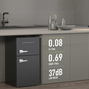 Saving Your Electricity Bills: Equipped with R600 a high-efficiency and low-consumption compressor, this dorm refrigerator only causes 0.69 kWh and $0.08 for a day to maintain the optimum humidity inside for your food, which is lower than most beverage fridge on the market. No matter where you are, our compact refrigerator operates smoothly and quietly at a minimum noise under the 37dB for better fitting in bedrooms, dorms and offices without occupying much space.