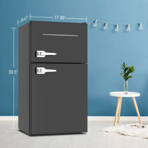 3.1 Cu.Ft for Spacious Storing: If you’re looking for the perfect small refrigerator to preserve fresh fruits, vegetables or refrigerated drinks, the mini fridge for office with a compact size of 17.8*20.5*33.5″ will satisfy you in keeping all needs in order and fresh. Coming with 2-door design, our refrigerators have a separate 1 Cu.Ft freezer zone,which is roomy enough for your ice cream or frozen food in hot summer.