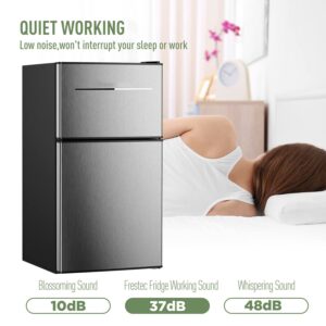 3.1 Cu.Ft. Mini Refrigerator with Freezer, Compact 2 Door Refrigerator and Freezer, for Bedroom Home Office Dorm, Stainless Steel