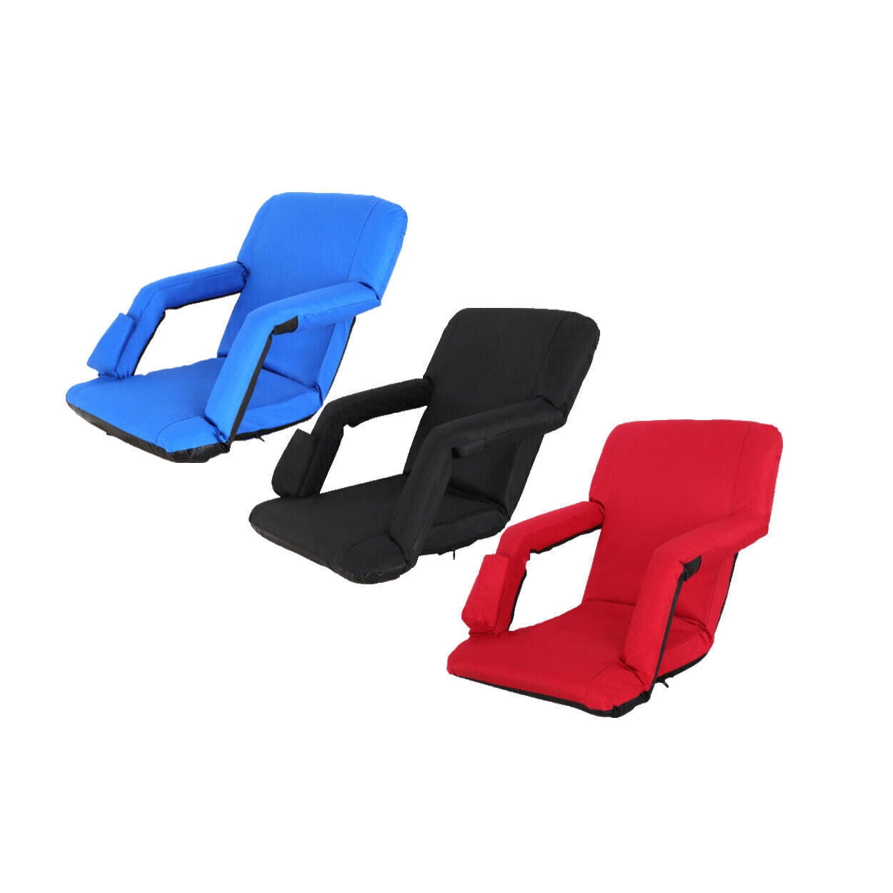 Wide Stadium Seat for Bleachers w/Back Support Stadium Chair Extra Thick 3 Color Features: 【High Quality, Durable and Comfortable】This portable stadium seat is made with 420D polyester covered cushion with inner cotton stuffing, for comfort at any outdoor event such as a picnic, beach, stadium, park, patio etc. 【5 Reclining Positions】This folding seat will let you rest in style when you have a outdoor picnic, watch the kids running at the sports ground or just make a sunbathing on the beach. 5 tiltable back positions aid in finding the proper angle for any stature. 【Additional Cup Holder】Apart from armrest design, the additional cup give more convenience of drinking. It can adapt to a long time deeply anxious competition. 【Lightweight Portable】Despite sturdy steel frame, its handiness allows you can move it easily. Besides, there is gallus on the back like a backpack. 【Foldable Space Saving】After the game, when you want to store it until the next, this stadium seat can be folded and save more space. Specification: Color: Black/Red/Blue Weight: Approx.7.27 lbs Weight Capacity: Up to 280 pounds Item Material: Steel + 420D polyester+cotton+PVC Folded Dimensions: Approx. 33″ x 2″ x 21.2″ Seat Dimensions: Approx. 18.8″ x 15.7″ x 20.4″