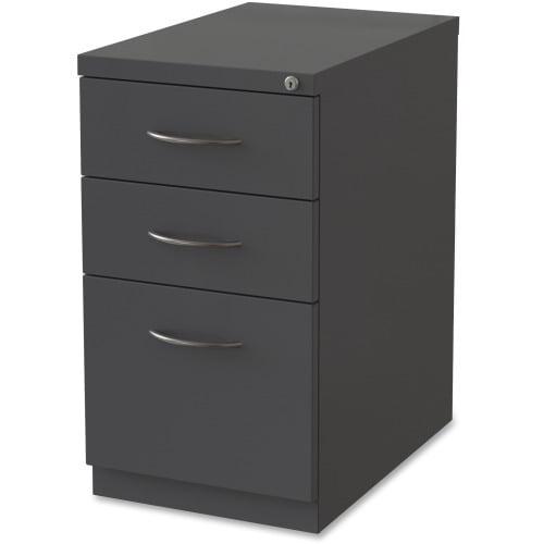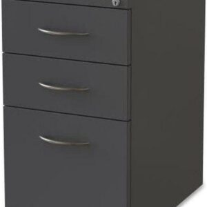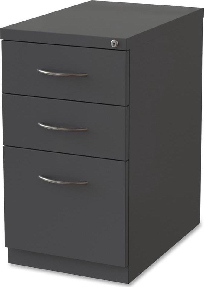 Premium mobile pedestal file features durable construction to withstand intense daily use. Two box drawers include a pencil tray and one divider per drawer to help organize your supplies and belongings. The file drawer accommodates letter-size, hanging file folders with the included hangrails. Secure the contents with the core-removable lock. Premium arch drawer pulls and clean style integrate with most office environments. Precision ball-bearing suspension and full drawer extension deliver optimal performance. Counterweight guards against tipping. Greenguard Gold certified pedestal file meets or exceeds applicable ANSI/BIFMA standards.