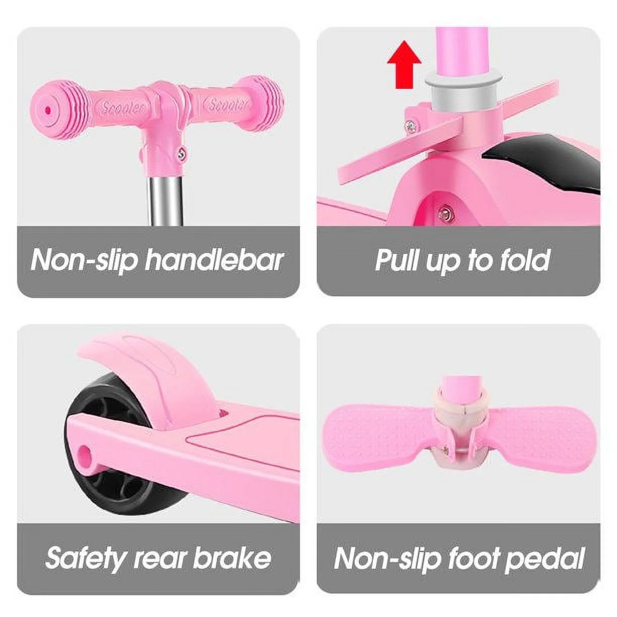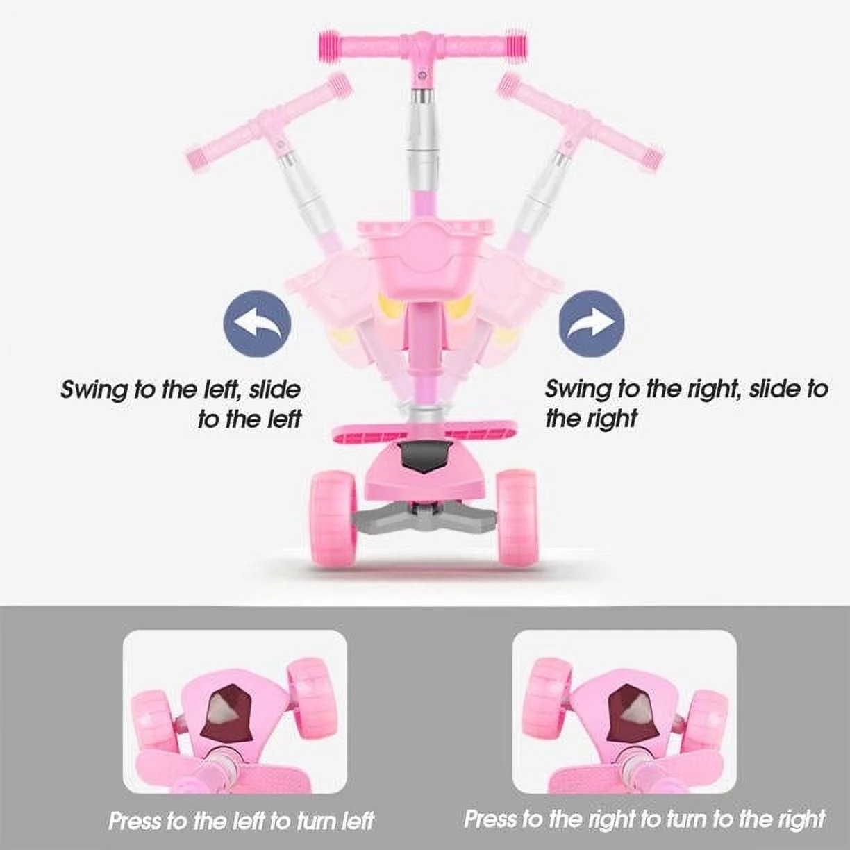 3 in 1 Kids Kick Scooter,3 LED Flashing Wheels Children Walkers Toddler Scooters with Removable Seat,Adjustable Handle T-Bar for Kids Birthday Gifts