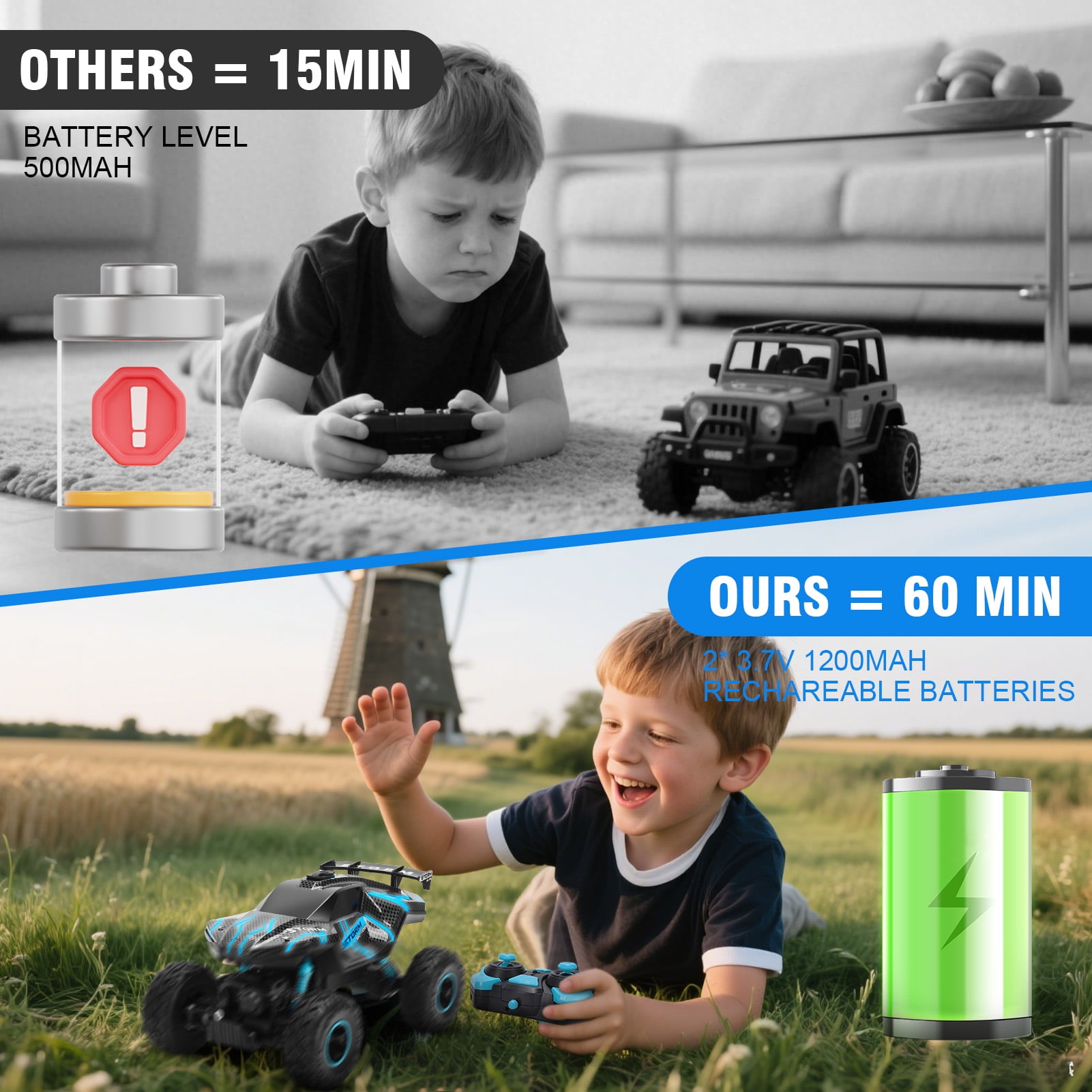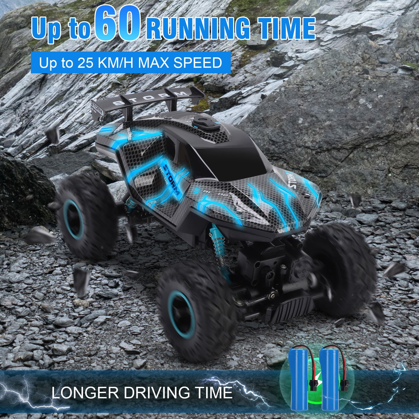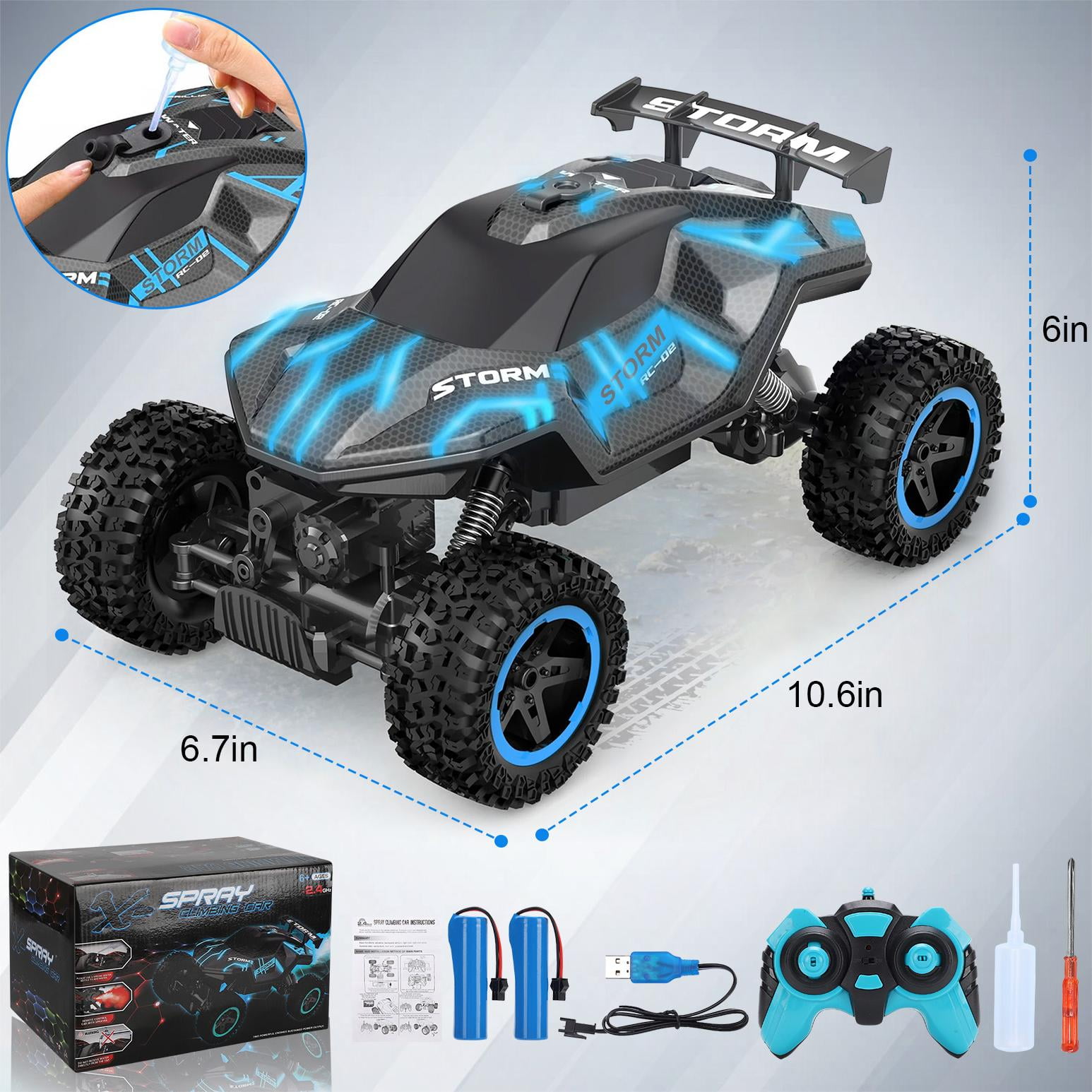 1:16 RC Car Remote Control Car, 60+min Monster Truck with Lights and Spray Function, All Terrain Off Road RC Monster Vehicle Truck for Kids, 2400Mah Battery