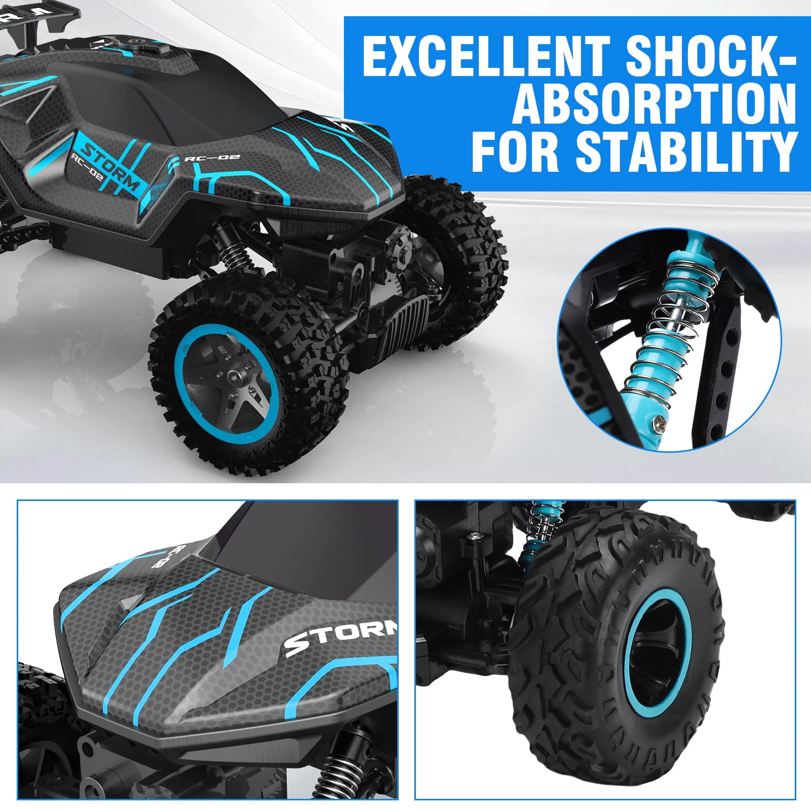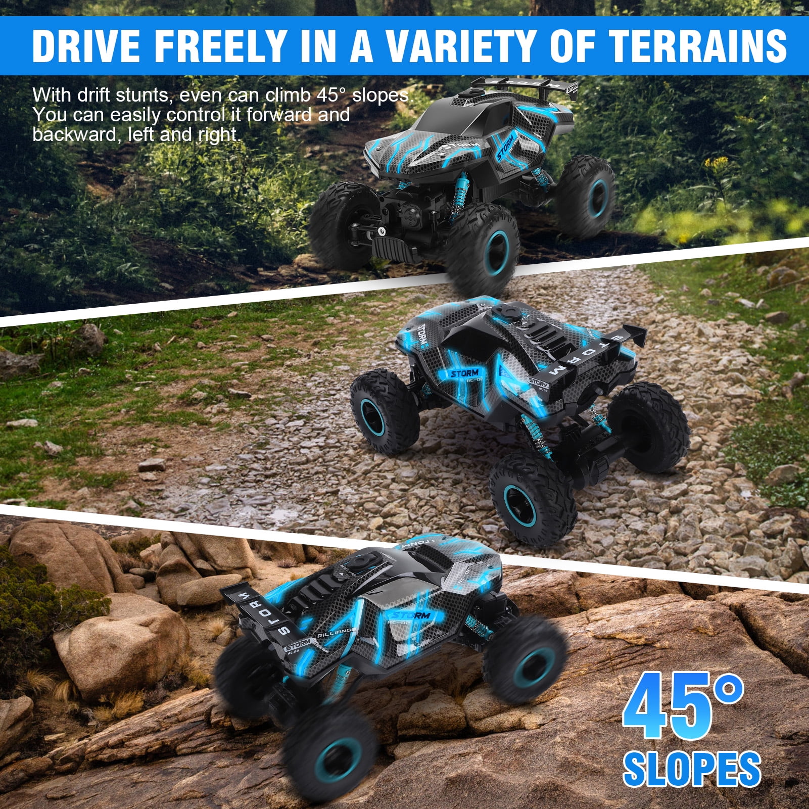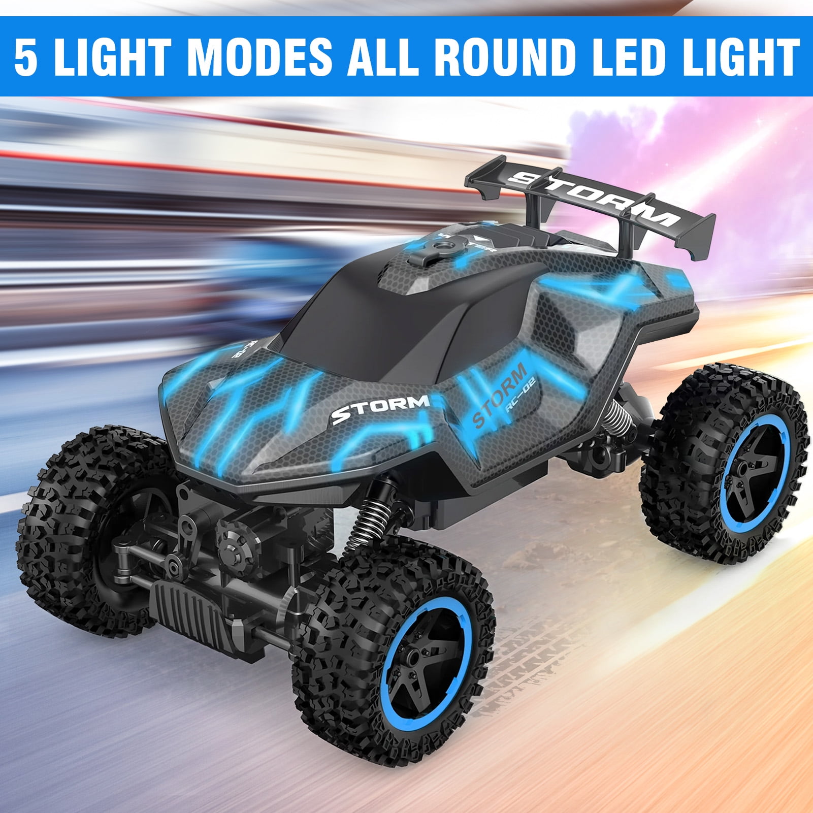 1:16 RC Car Remote Control Car, 60+min Monster Truck with Lights and Spray Function, All Terrain Off Road RC Monster Vehicle Truck for Kids, 2400Mah Battery