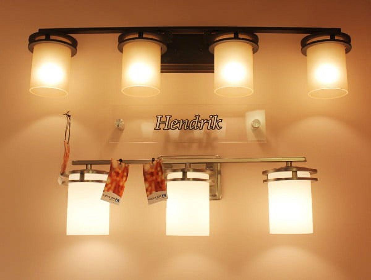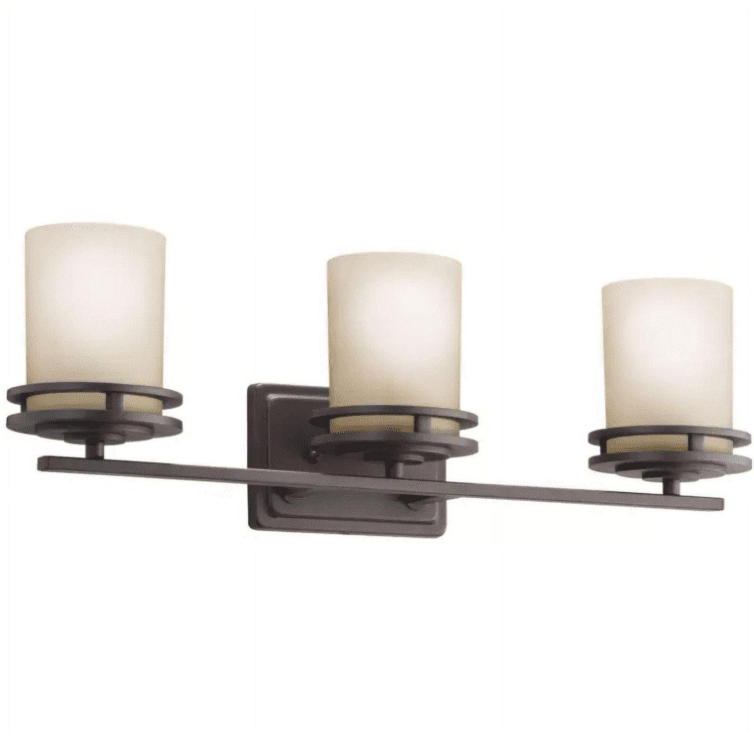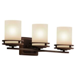 Kichler Lighting-5078OZ-Collection: Hendrik, Material: Steel, Finish Color: Olde Bronze, Width: 24″, Height: 7.75″, Depth: 6.25″, Height From Outlet Box: 5.5″, Backplate Width: 6.5″, Backplate Length: 4.5″, Lamping Type: Incandescent, Number Of Bulbs: 3, Wattage: 100 Watts, Dimmable: No, Moisture Rating: Damp Rated, Desc: The Hendrik(TM) 24in. 3 light vanity light features a classic look with its Chrome finish and satin etched cased opal glass. Inspired by Hendrik Berlage, the Hendrik vanity light works perfect in a bathroom or powder room that has a traditional and modern look. Mounting Direction: Up or Down / Back Plate Height: 4.50 / Back Plate Width: 6.50. ,-Hendrik – 3 light Bath Fixture – with Soft Contemporary inspirations – 7.75 inches tall by 24 inches wide-Olde Bronze Finish