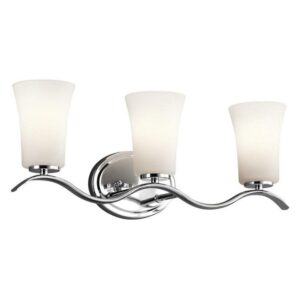 Collection: Armida, Material: Steel, Finish Color: Olde Bronze, Width: 23″, Height: 8.5″, Depth: 5.75″, Height From Outlet Box: 6″, Lamping Type: Incandescent, Number Of Bulbs: 3, Wattage: 100 Watts, Moisture Rating: Damp Rated, Desc: This 3 light bath light from the Armida(TM) collection is filled with distinctive touches, clean lines and simple structures. This silhouette brings height and dimension to the Chrome finish. May be installed with the glass up or down. Mounting Direction: Up or Down. ,-Armida – 3 Light Bath Vanity Approved for Damp Locations – with Transitional inspirations – 23 inches wide-Olde Bronze Finish-Incandescent Lamping Type-Armida Vanity Light, Vanity Light, Transitional Vanity Light, Chrome finish Vanity Light, Damp Rated Vanity Light, vanity light, bathroom light, over sink light, bath bar, multi light wall sconce, vanity strip light, sink lighting, bell lighting, bell lig-45376OZ