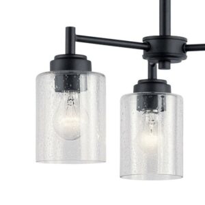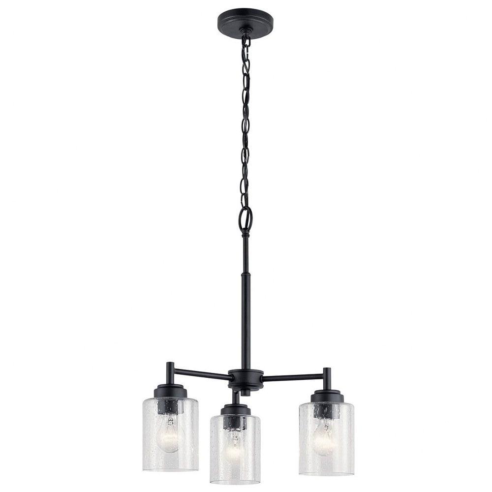 Kichler Lighting-44029BK-Collection: Winslow, Material: Steel, Finish Color: Black, Width: 18″, Height: 15.25″, Chain Length: 36″, Lamping Type: Incandescent, Number Of Bulbs: 3, Wattage: 75 Watts, Dimmable: No, Moisture Rating: Dry Rated, Desc: The modern Winslowa 3-light mini chandelier in a Black finish with Clear Seeded glass shade pair beautifully with the linear arms, bringing light and dimension to a space. Chain Length: 36.00. ,-Winslow – 3 light Mini Chandelier – 15.25 inches tall by 18 inches wide-Black Finish -Traditional Installation