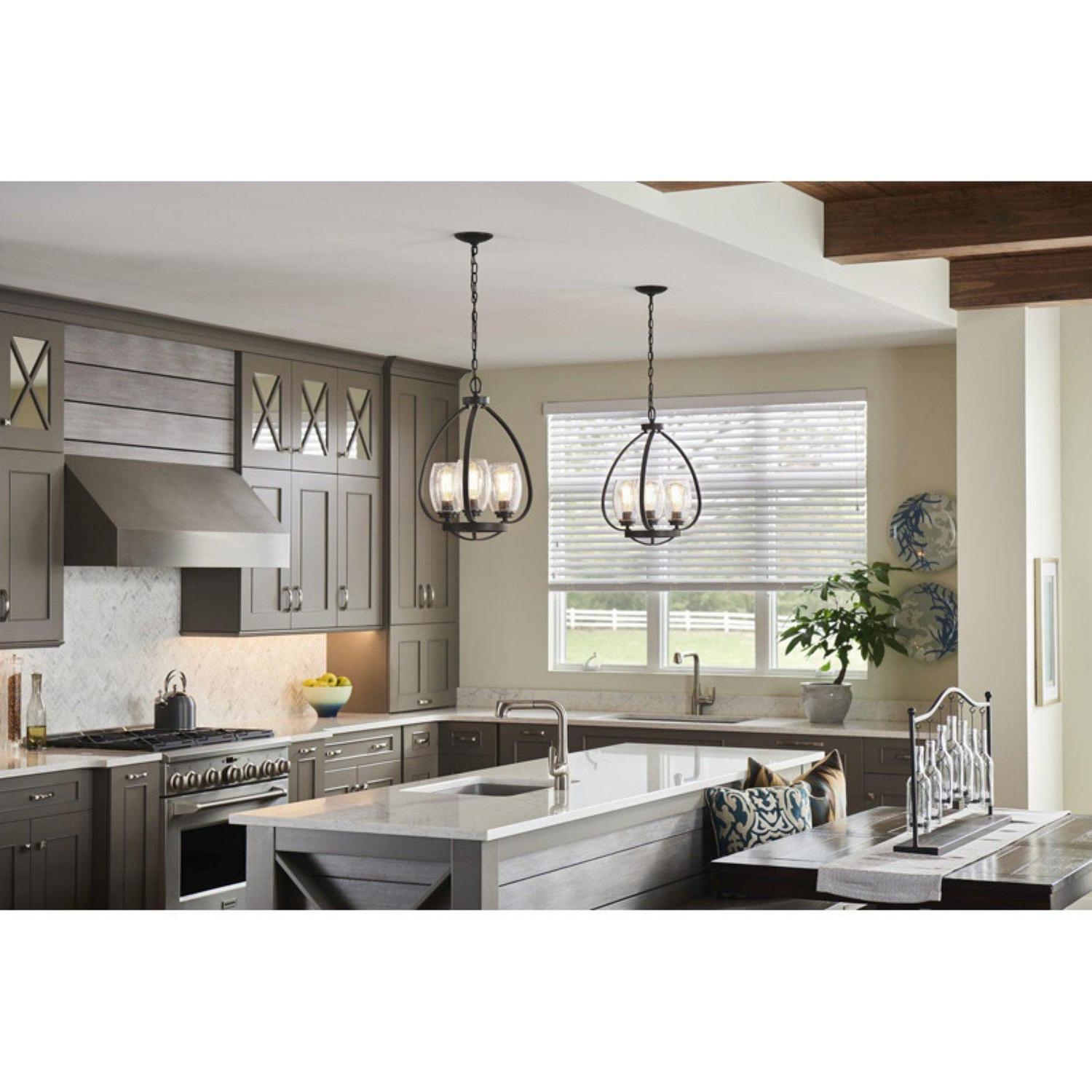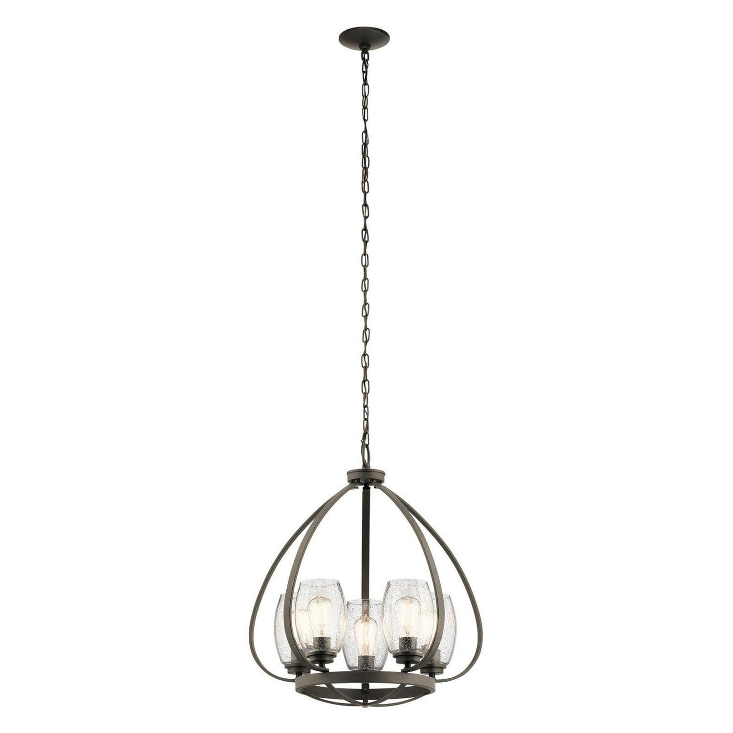 With a caged design made of sturdy metal, the Kichler Tuscany Chandelier brings rustic appeal to any space with its warm old bronze finish. A trio of clear bubble glass shades brings this chandelier a delightful aesthetic that’s perfect for a kitchen, bedroom, or living space.