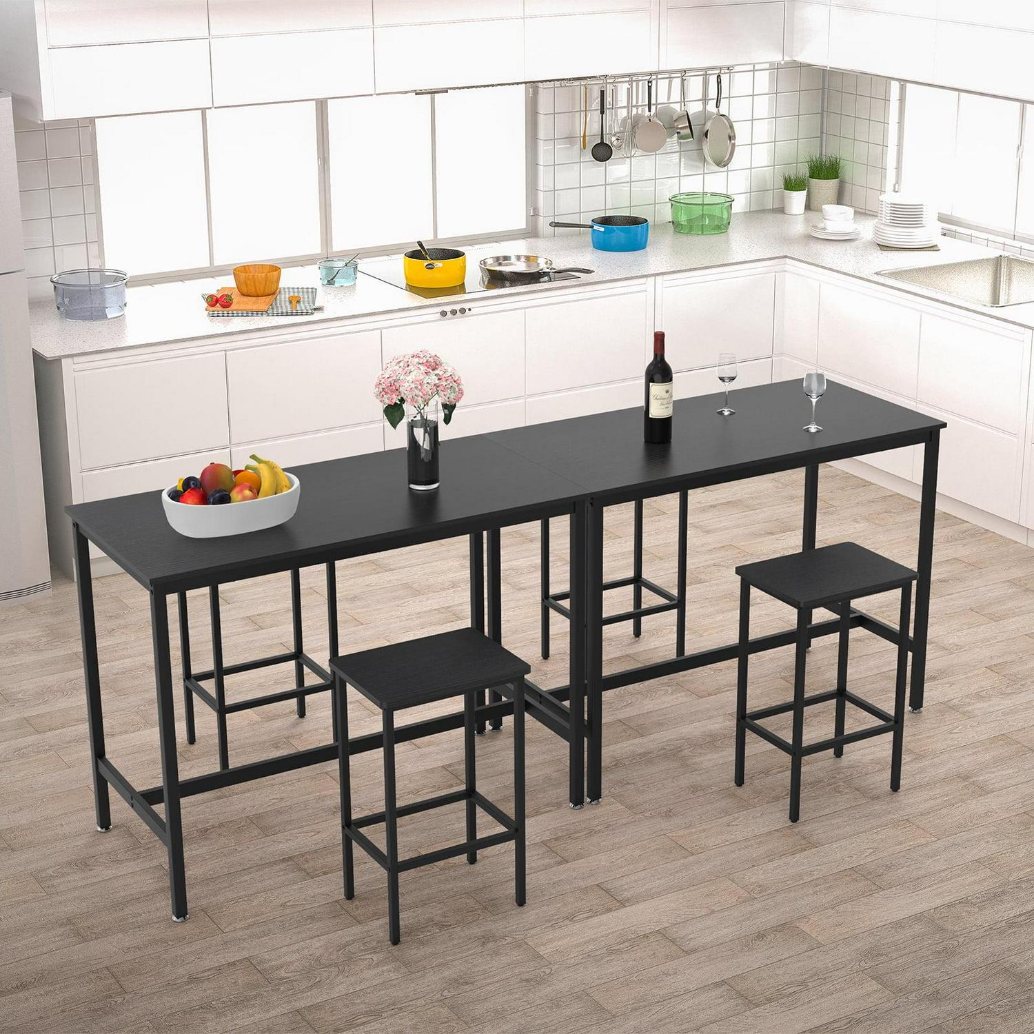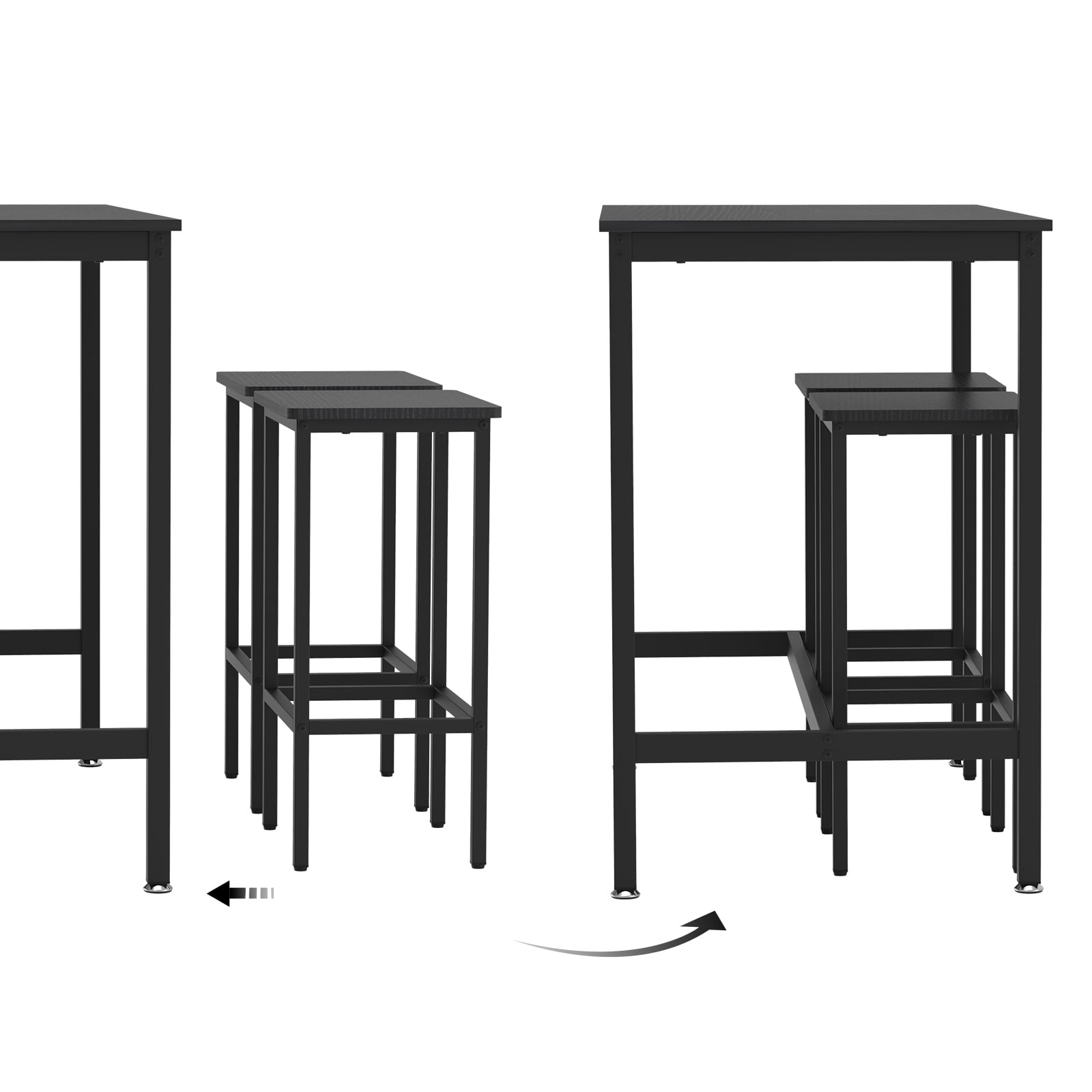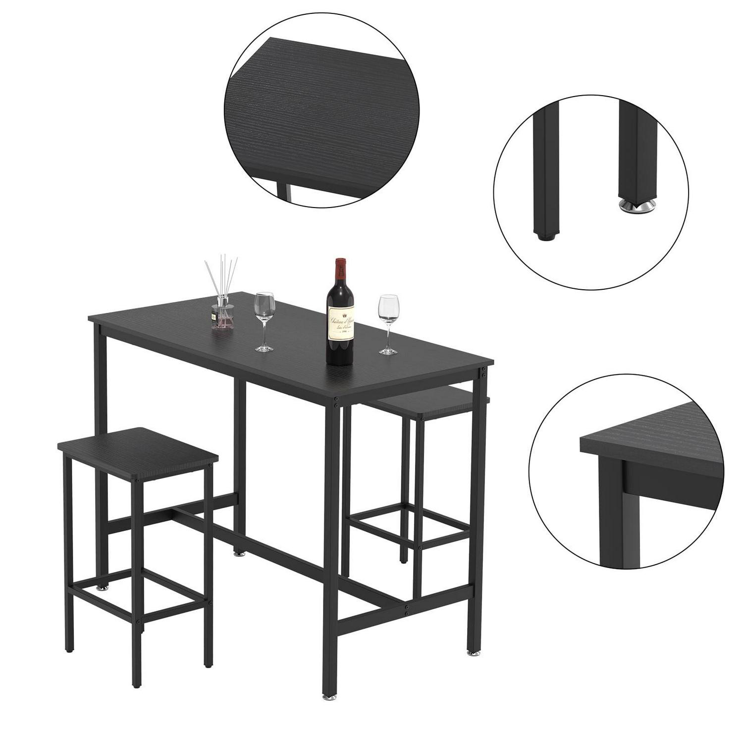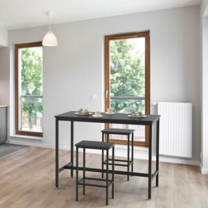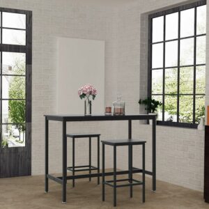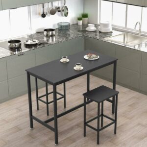 3 Piece Bar Table and 2 Chairs Set Counter Height Dining Set, Black